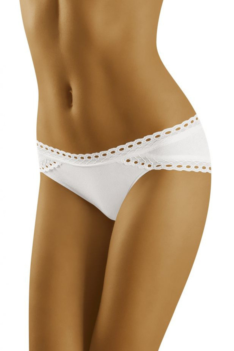Hladké bavlněné dámské kalhotky. Kalhotky jsou na okrajích zdobené půvabnou plasticky vyšívanou dírkovanou lemovkou. Model je neobyčejně pohodlný a působí velmi žensky.