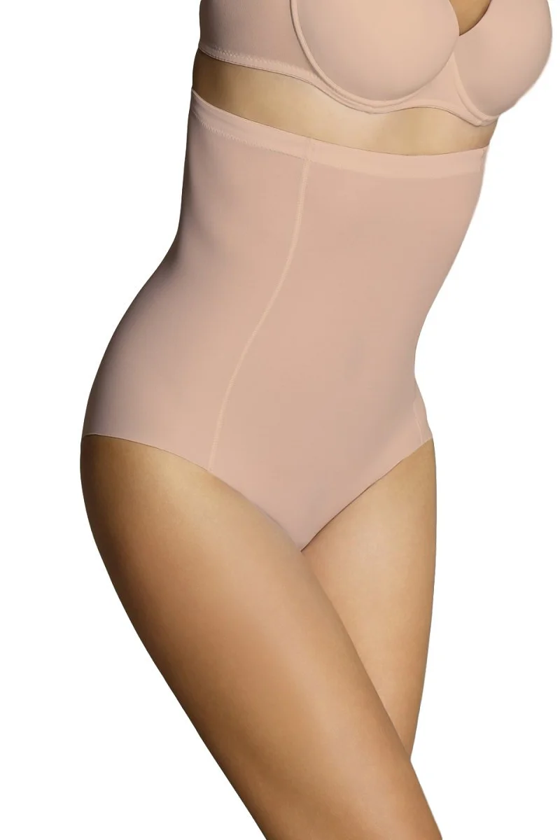 Vysoké dámské kalhotky, které pěkně tvarují postavu. Kalhotky tvarují bedra a pas a zeštíhlují bříško. Okraje modelu jsou tence lemované a jsou střižené laserem. Kalhotky jsou při nošení pohodlné a komfortní a nerýsují se pod oblečením. V horní linii pasu je na vnitřní straně dvojitý silikonový pásek, díky kterému se kalhotky při nošení nesesouvají. Složení: 62 % polyamid, 38 % elastan.