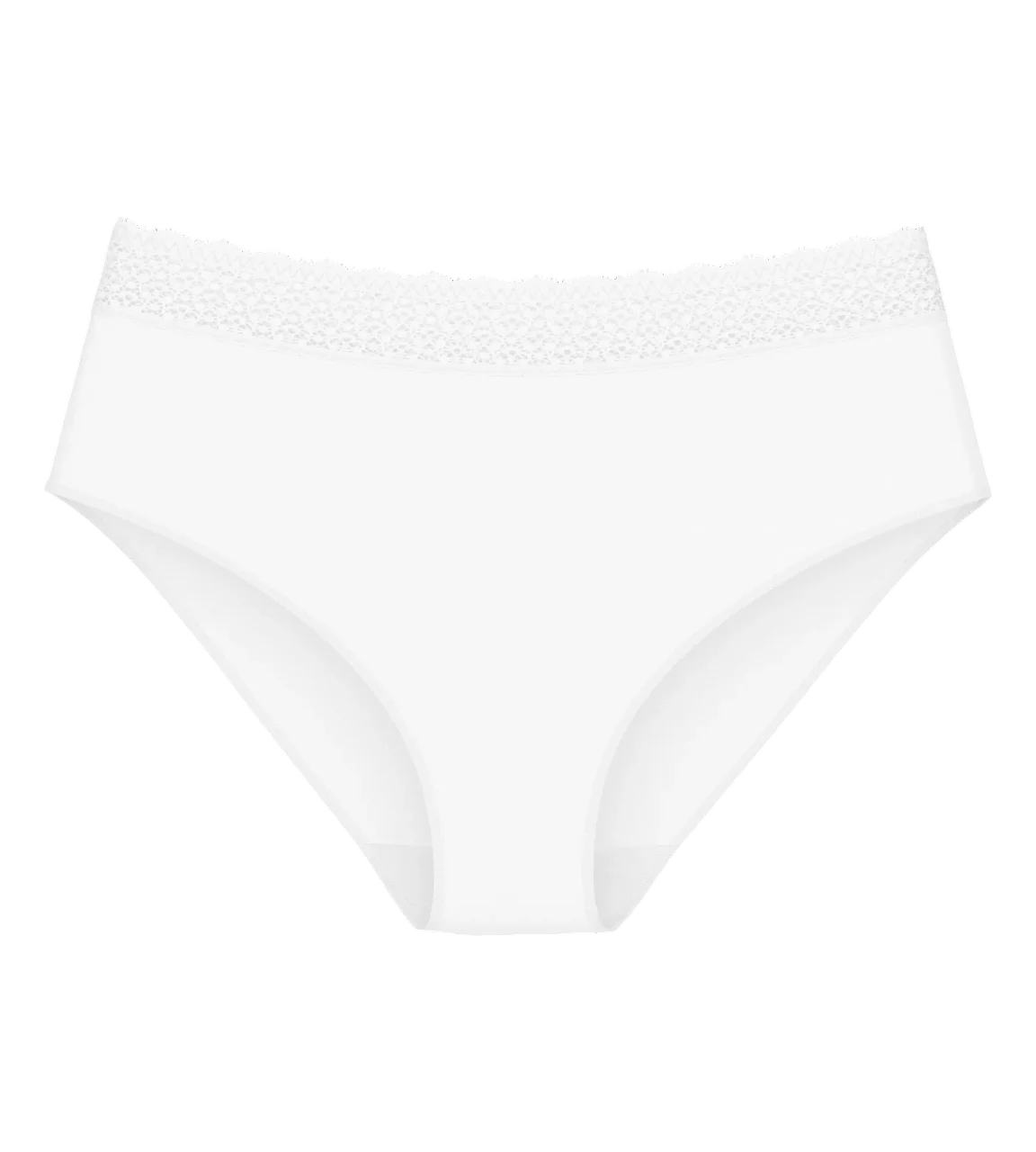 Luxusně hebká tkanina. Ve střihu, který je vždy pohodlný. Tyto midi kalhotky jsou ideální na každodenní nošení. Balení dvou midi kalhotek s vysokým pasem Hebký pocit na pokožce Pas s lemováním z recyklované krajky Klín kalhotek z bio bavlny OEKO-TEX® STANDARD 100, 93.0.3130 Hohenstein HTTI Materiálové složení: 87% Modalová viskózová vlákna, 13% Elastan