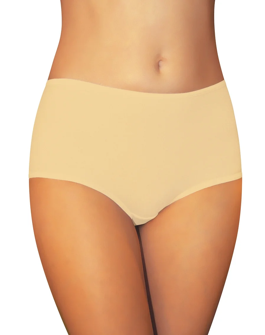 Dámské kalhotky typu classic - bikiny, z bavlny a elastanu 5%. Boční část šířky 13,5 cm. Obšité plochou gumičkou, která není vidět pod oblečením. Baleno v krabičce po dvou kusech.