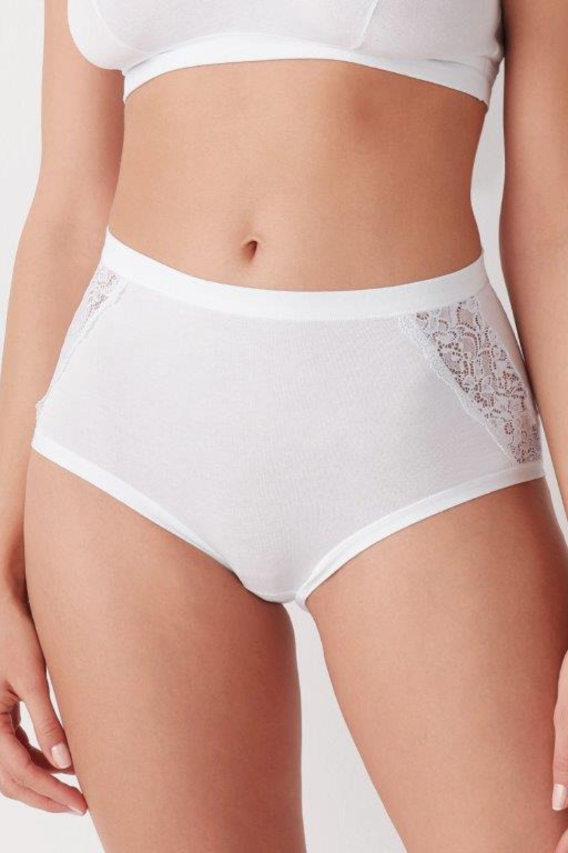 Dámské maxi kalhotky. Boky zdobí jemné krajkové vsadky.V balení jsou nabízeny dva páry.