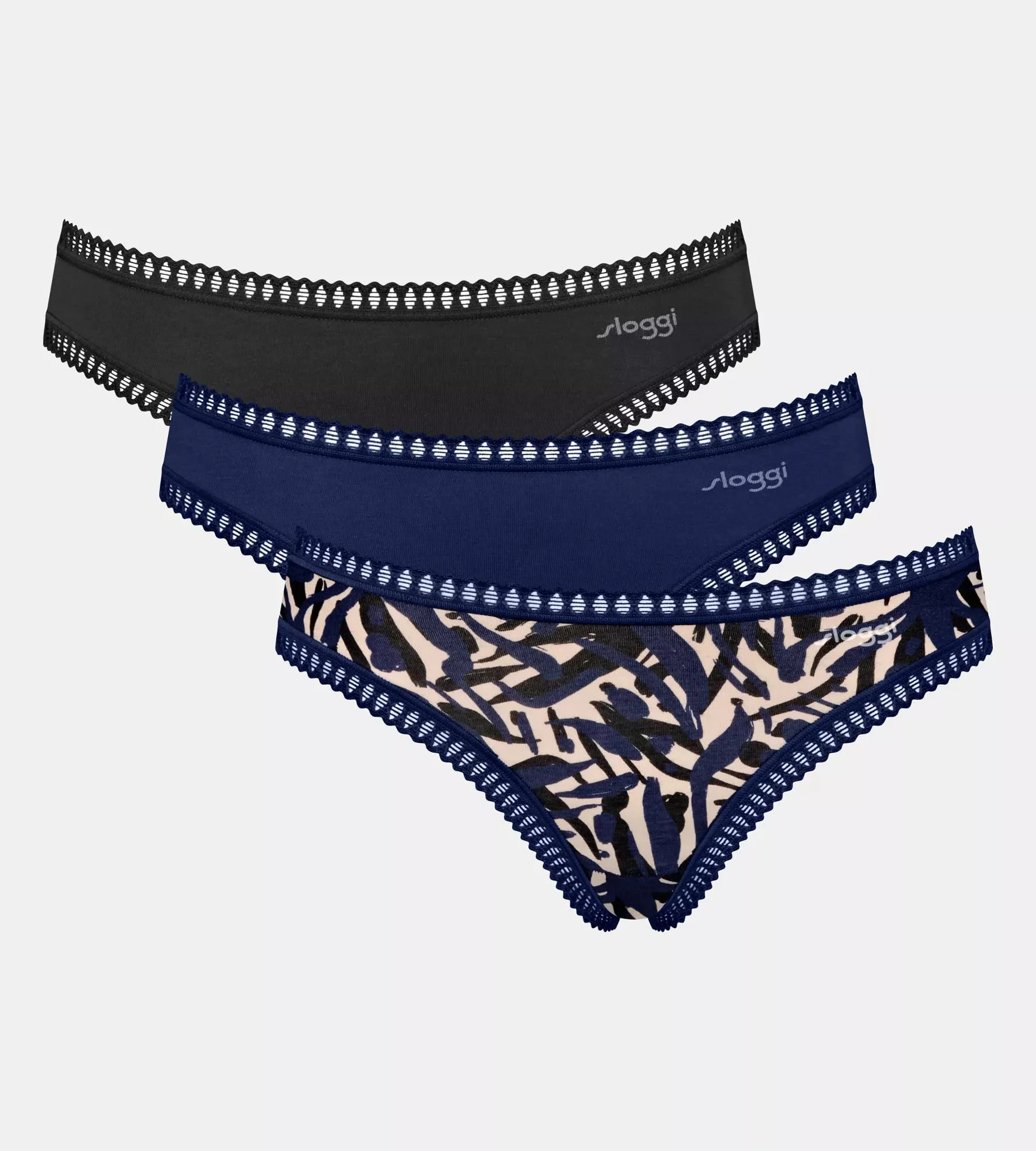 Objevte svůj nový crush ve spodním prádle! Tyto mini kalhotky GO Crush jsou vyrobeny z pohodlné organické bavlny v rozkošných vzorech a dodávají se v praktických multibaleních, takže můžete měnit svůj vzhled každý den v týdnu. 3-balení mini kalhotek s úzkými boky Velmi měkká organická bavlna s certifikátem GOTS Elastické krajkové lemy pro lichotivý střih Směs jedinečných sloggi potisků a tónovaných barev OEKO-TEX® STANDARD 100, 22.0.22419 Hohenstein HTTI Materiál: 95% Bavlna, 5% Elastan