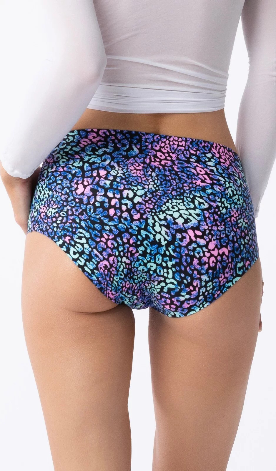 Dámské kalhotky - maxi střih, vysoký nárt - širší a plnější boky - barevný tisk - laserem řezané, bezešvé - neviditelné pod přiléhavým oblečením Složení: 89 % polyamid, 10 % elastan, 1 % bavlna