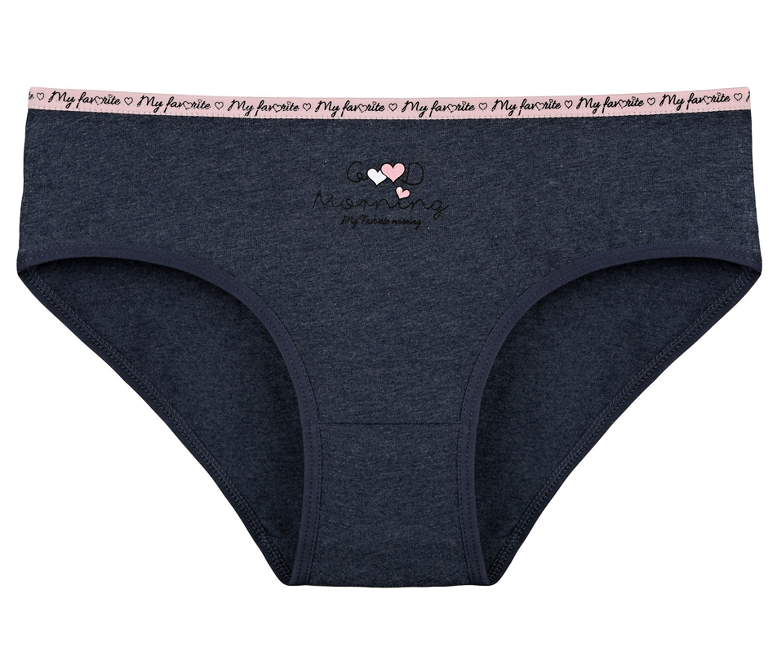 Dámské bavlněné kalhotky Jitřenka. Slušivé klasické kalhotky jsou pohodlným typem spodního prádla pro všechny příležitosti. Jsou zdobené drobnými srdíčky a nápisem. Obzvláště oceníte materiálové složení - 95% bavlna a 5% elasten. Použitý materiál je příjemný a poddajný na dotek.