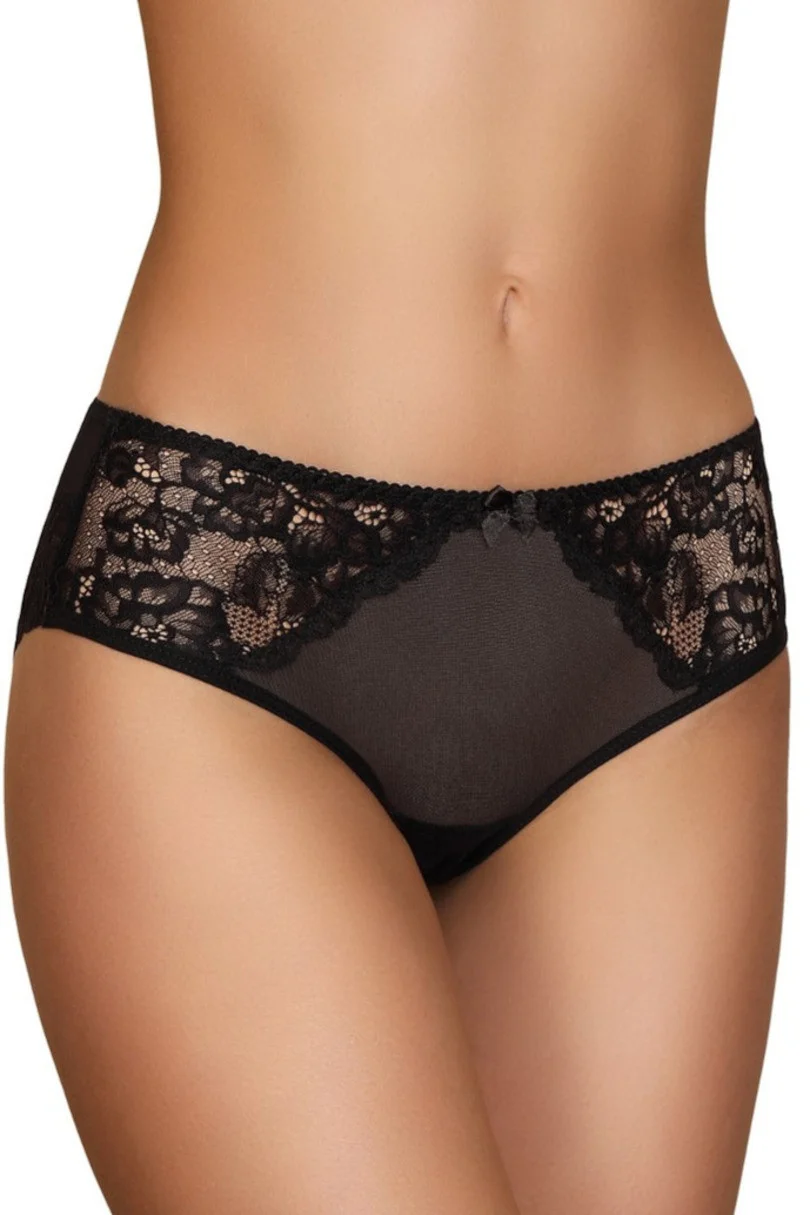 Dámské kalhotky, které jsou vyrobené z jemné síťoviny a krajky. Složení: 85 % polyamid, 15 % elastan.
