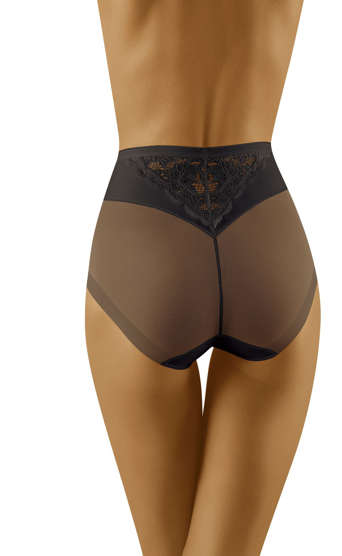 VelikostSMLXLXXL Obvod boků85-88 cm89-92 cm93-96 cm97-100 cm101-104 cm Velmi ženské kalhotky s vyšším střihem, doplněné vsadkami z krásné krajky. Přední díl se svislými průstřihy, tvarujícími oblast břicha a boků. Zadní díl s jemným projmutým efektem, jemně zvedající hýždě. Vysoká kvalita. Složení: 58 % polyamid, 42 % elastan.
