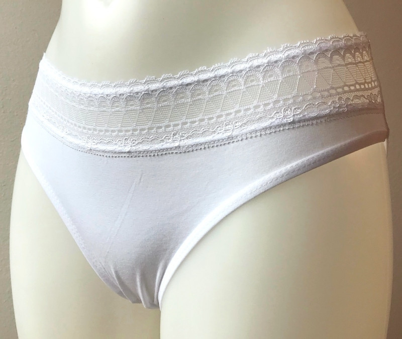 Dámské kalhotky Michaela. Dámské kalhotky klasického střihu s jemnou krajkou v pase. Použitý materiál je jemný a poddajný na dotek.