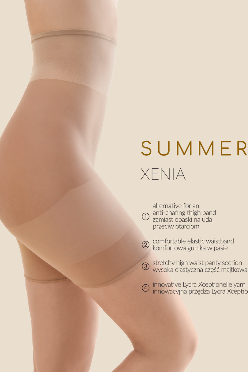 Prodyšné látkové dámské kalhotky, které chrání před odřeninami vnitřní strany stehen. Prodloužené nohavičky nejenom chrání stehna před odřeninami, ale také je v horní části opticky zeštíhlují. Model má v pase širokou gumu, která netlačí a která udržuje kalhotky na správném a žádoucím místě. Kalhotky mají vysoký střih až pod linii podprsenky, a proto lehce zeštíhlují bříško. Kalhotky s prodlouženými nohavičkami spojují přednosti prodyšného spodního prádla s přednostmi pásek na stehna, které se nosívají v teplých dnech. Značku Gabriella design inspirovaly při navrhování těchto látkových kalhotek nejlépe prodávající se pásky na stehna punčochové kalhoty s vysokým pasem. Speciální guma v pase, která netlačí, udržuje model na správném a žádoucím místě. Kalhotky jsou vyrobené z pružné příze Lycra Xceptionelle, která obepíná tělo a poskytuje efekt zeštíhlení. Model se pěkně přizpůsobuje postavě a zvýrazňuje ženské tvary. Kalhotky jsou díky super pružné přízi Lycra Xceptionelle ušité bez velkého klínu.