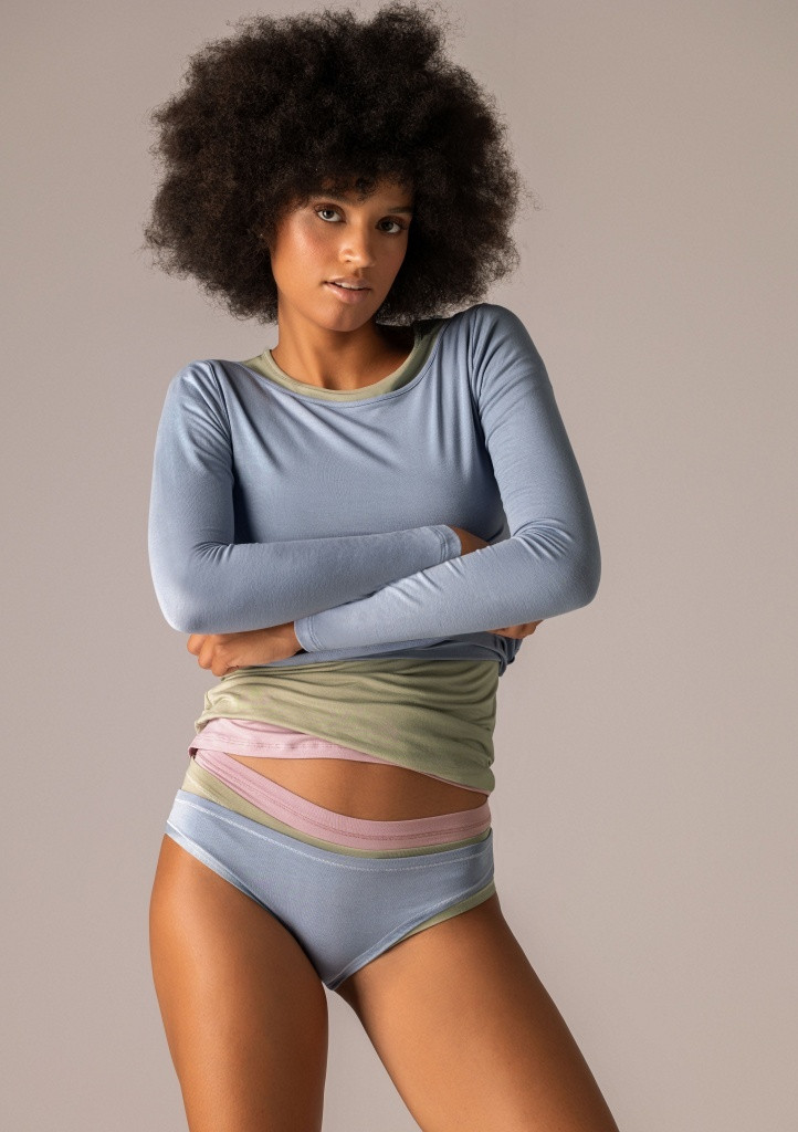 Dámské kalhotky od italské značky SIELEI. Kalhotky klasického střihu s nízkým pasem jsou vyrobeny z modalu. Díky tomu jsou velmi měkké a příjemné na nošení. Materiál je pružný a prodyšný. V pase a nohavičkách jsou ploché elastické lemy. Uprostřed je všitý bavlněný klínek pro maximální komfort. Kalhotky mají certifikát “OEKO-TEX Standard 100“, je to mezinárodně uznávaný certifikát, který zajišťuje, že textilní výrobky neobsahují škodlivé látky, mají zdravotní nezávadnost a jsou ekologicky šetrnější. Materiálové složení: 93% modal, 7% elastan.
