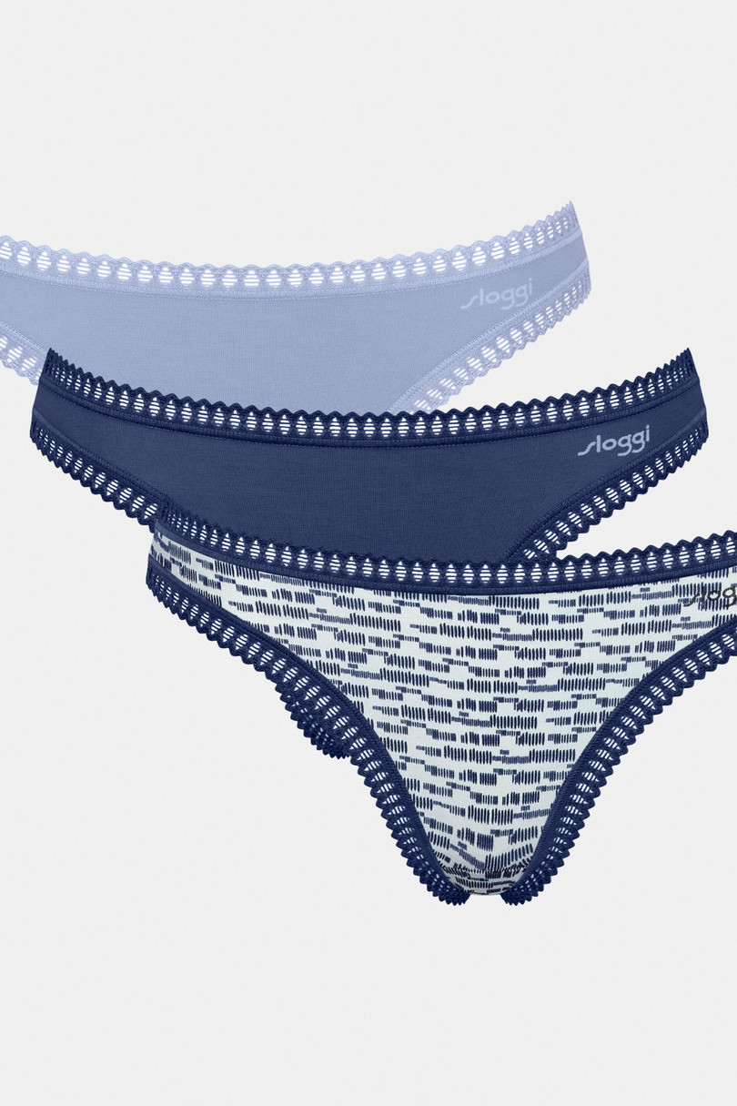 Dámské spodní kalhotky ve stylu tanga s úzkými boky. Extra měkká organická bavlna s certifikátem GOTS. Elastické krajkové lemy pro lepší přizpůsobení. 3 kusy v balení ve vyobrazených barvách. Složení: 95 % bavlna, 5 % elastan. .