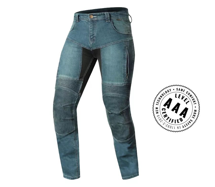 Jak vybrat správnou velikost kalhot? Nová generace nejžádanějších motocyklových jeans na trhu! Trilobite Parado Circuit jsou jediné moto jeans z nabídky Trilobite®, které se můžou pochlubit certifikací označenou třemi \"áčkami\". Ta je nejčastěji k vidění na kožených racingových bundách nebo kombinézách. Tyto džíny jsou vyrobeny z velice odolného materiálu TRI-FORCE®, který se vyrábí spojením bavlněného vlákna s vláknem UHMWPE. Tento exkluzivní technologický proces vytváří pravý denim s pevným jádrem a díky tomu disponuje materiál TRI-FORCE® mechanickými vlastnostmi pravé kůže. Díky němu dosahují kalhoty Trilobite Parado Circuit extrémní ochranu v jedné vrstvě! Džíny nabízí bezkonkurenční jízdní komfort nejen kvůli elastickému denimu, ale také díky ergonomicky tvarovaným strečovým panelům v rozkroku, oblasti sedu a na kolenou. Součástí kalhot jsou vyjímatelné chrániče SAS-TEC CE level 2, které jsou umístěny na kolenou a bocích. Zaručují maximální ochranu při případném pádu v těchto partiích těla. Při jízdě v horkých letních dnech určitě oceníte velké ventilační kapsy na stehnech, které pustí čerstvý vzduch přesně tam, kde je zapotřebí. \r \r VNĚJŠÍ MATERIÁL:\r - Davos Denim, TRI-FORCE® (52% bavlna, 42% UHMWPE, 5% Elasto Multi-Ester, 1% elastan), Stretch Fabric\r \r STRETCH panel\r - zvyšuje optimální pohodlí a umožňuje dvoudimenzní elasticitu\r - zaručuje komfort pohybu při jízdě na motocyklu\r - vyrobeno z elastomeru v kombinaci s polyamidovými vlákny\r \r VENTILACE\r - nezbytná ventilace pro opravdu horké letní dny \r - zvyšuje komfort a pohodlí při jízdě na motocyklu\r \r ERGONOMICKÉ VLASTNOSTI\r - 5 kapes\r - strečové panely na kolenou, v pase a rozkroku\r - nastavitelná výška chráničů kolen\r - dvojitá poutka\r - zvýšený bederní pás\r \r Co je vlastně certifikace označená AAA?\r \r \r \r Bezpečnost při jízdě na motorce je dnes mnohem častěji skloňována než-li dříve. Proto je hlavním cílem značky Trilobite® nabízet kvalitní a bezpečné oblečení pro motorkáře. Džíny Trilobite® jsou testovány podle nejnovějších norem EU. Nová norma EU EN 17092: 2020 přináší nové zkušební metody, které mohou mnohem lépe simulovat skutečnou odolnost výrobků při nárazu či oděru. Každá úroveň ochrany udává dobu odolnosti proti oděru při \"klouzání\" po asfaltu. Existují tři úrovně A - AAA. Podle nich je možné rozdělit obleční pro různé typy použití v souladu s odolností proti oděru. Pro nejrizikovější jízdu jsou vyvjíjeny produkty s odolností proti oděru dosahující úrovně AAA. Tu nejčastěji vidíme u kožených závodních kombinéz například. Takto označené oblečení může poskytnout ty nejúčinnější ochranné prvky v případě pádu. Oblečení certifikované v úrovni AA je stále velmi bezpečné! Ale s některými nižšími vlastnostmi oproti oblečení s certifikací AAA. Výrobky s úrovní A jsou vyvinuty pro jízdu v nižších rychlostech a nižších rizicích. \r \r \r \r \r Oficiální stránky Trilobite: www.trilobitemoto.com
