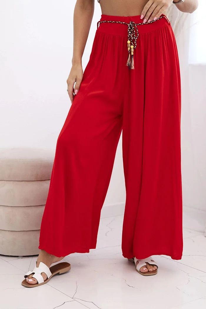 Dámské kalhoty z viskózy se širokými nohavicemi červený UNI