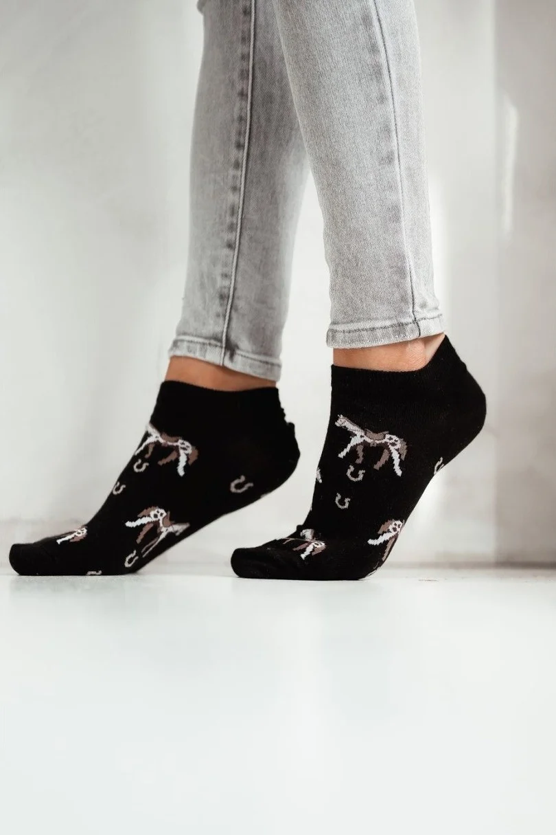 Roztomilé dámské koníčky! Jsou vyrobeny z měkké a prodyšné bavlny a poskytují pohodlí a komfort po celý den. Jejich jedinečný koňský vzor dodá charakter každému oblečení, takže jsou ideální volbou pro milovníky zvířat a přírody. Elastická tkanina zajišťuje dokonalé přizpůsobení, zatímco díky lehké konstrukci jsou ideální pro všechna roční období. Skvěle se hodí k teniskám, cvičkám i běžné obuvi..