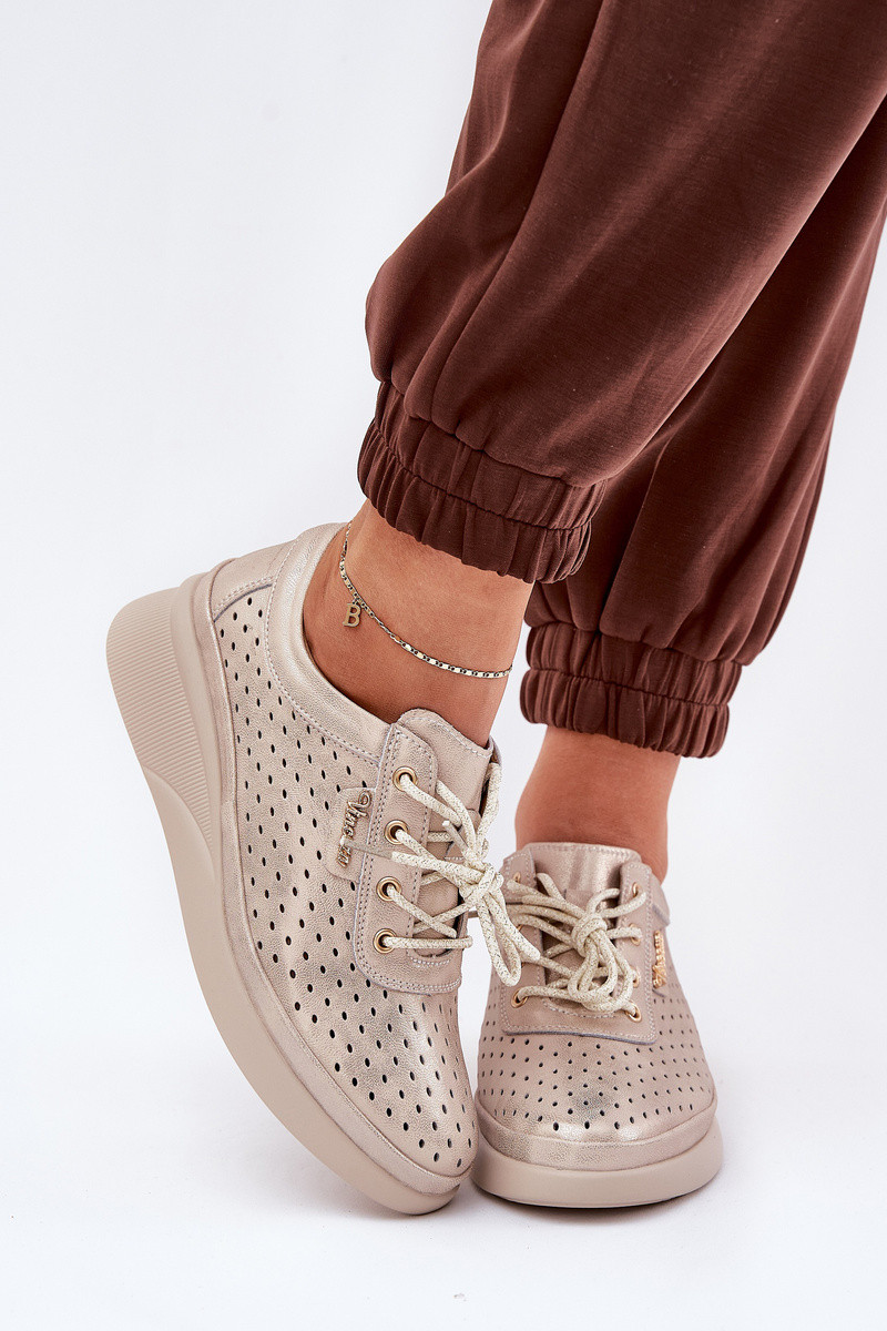 Krásné dámské tenisky jsou vyrobeny z přírodní kůže, která zaručuje vysokou kvalitu a odolnost. Jejich perforovaná struktura po stranách zajišťuje vhodný proud vzduchu, což je činí ideálními na teplé dny. Model je klasicky šněrován, což umožňuje ideální přizpůsobení k noze. Zaoblený špičatý konec přidává botám eleganci. Měkká kůží vyrobená vložka zajišťuje pohodlí během nošení. Tyto moderní tenisky jsou skvělou volbou pro každodenní styly! Při výběru velikosti se řiďte tabulkou velikostí. 36-23,5/37-24/38-24,5/39-25,5/40-26/41-26,5cm