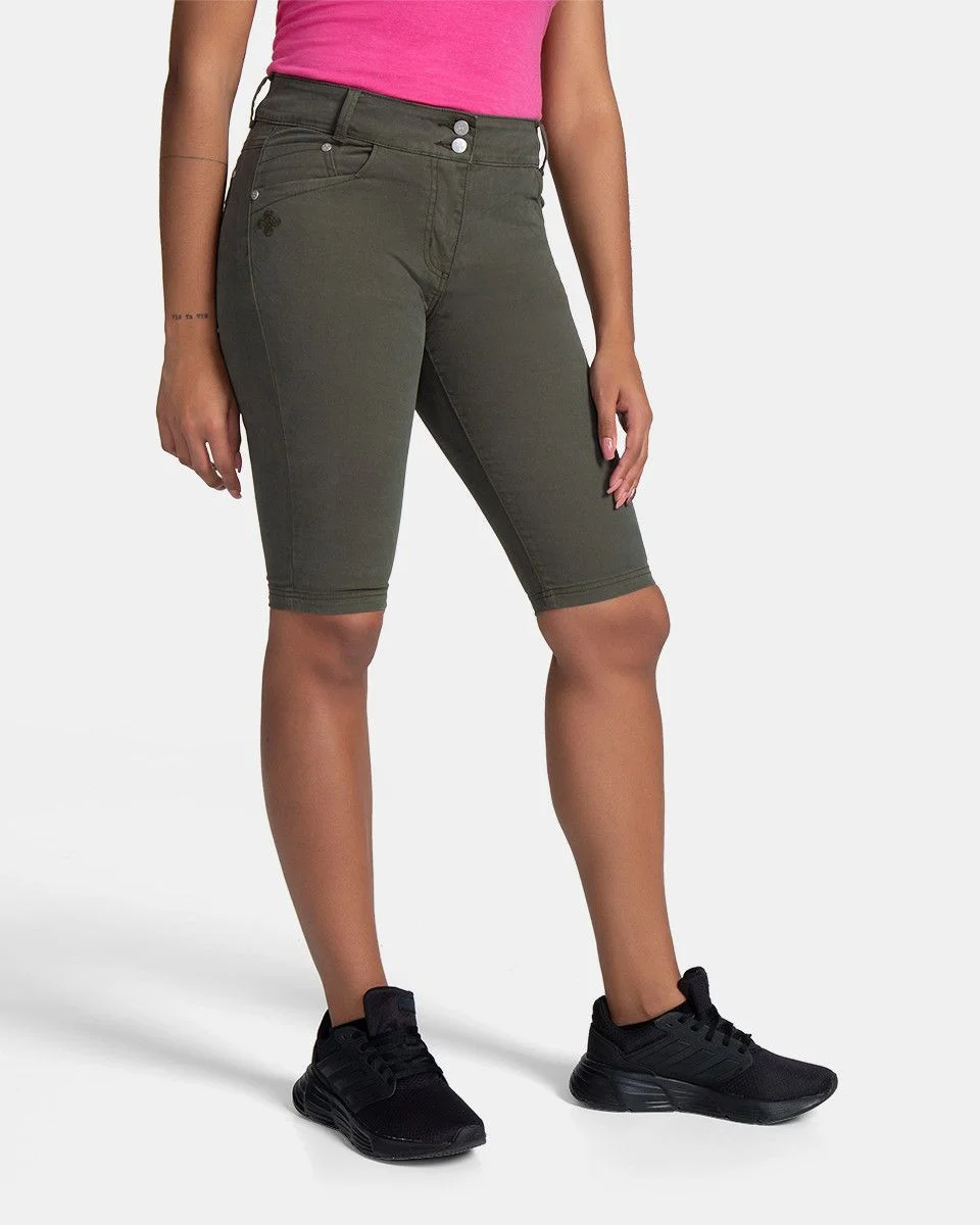 Dámské bavlněné kraťasy Kilpi PARIVA-W, jsou určeny pro outdoorové aktivity, volný čas, nebo denní nošení. Mají délku nohavic nad kolena. Jsou ušity z hebkého elastického materiálu z imitace denimu s příměsí bavlny, která je pružná a příjemná k pokožce. Klasické zapínaní v pase je doplněno poutky na pásek, dvěmi kapsami v přední části a dvěmi kapsami na zadku. Kilpi PARIVA-W nabízíme v několika stylových barvách.Modelka na fotografii: Velikost 36, výška 170 cm, obvod hrudníku 84 cm, obvod pasu 64 cm, obvod boků 92 cm.Materiálové složení:
