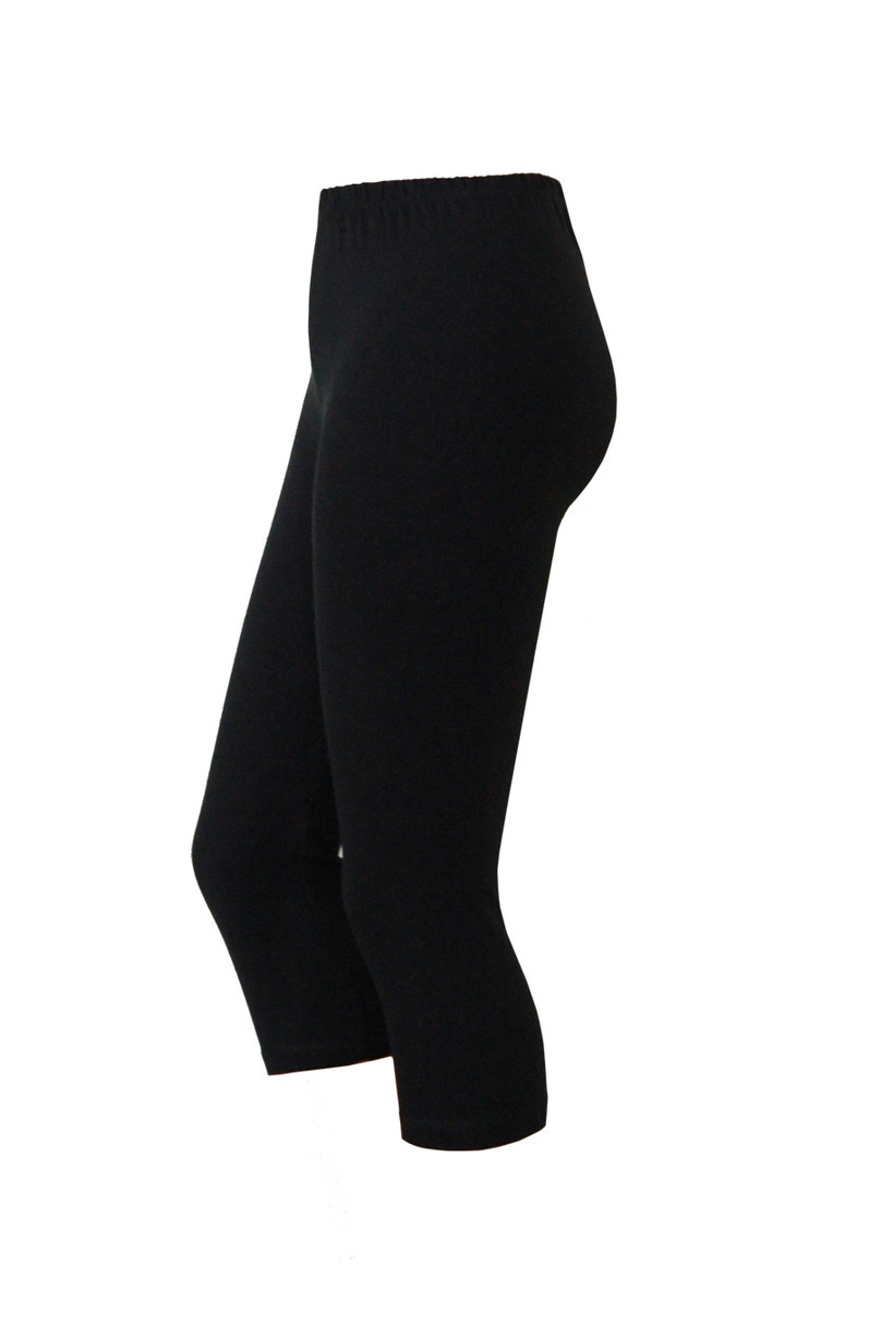 Dámské bavlněné legíny 3/4 délky. Rozměrově vhodné pro ženy s plnými tvary. U rozměru 3XL je pro větší pohodlí všitý klín. Materiál složení: 95% bavlna, 5% elastan.