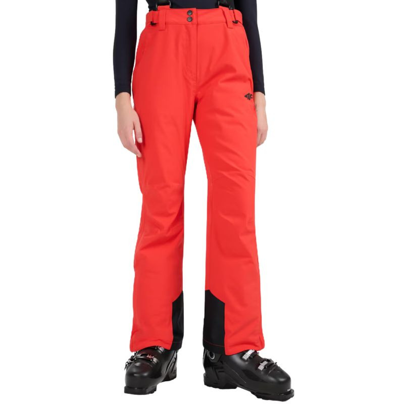Spodnie narciarskie damskie 4F FNK F0944 czerwone 4FWAW25TFTRF0944 62S Spodnie narciarskie damskie 4F zapewnią swobodę i ochronę nie tylko na stoku. Dane techniczne:· Materiał główny: 100% poliester· Materiał dodatkowy: 100% poliester· Podszewka: 100% poliester· Wypełnienie: 100% poliester (ocieplina poliestrowa)· Poziom wodoodporności membrany: 5 000 mm· Poziom oddychalności membrany: 3 000 g· Membrana NeoDry 5000/3000 - chroni przed lekkim deszczem i wspiera oddychalność materiału· Wszystkie klejone szwy - dodatkowa ochrona przed wnikaniem wilgoci do wnętrza· Hydrofobowe wykończenie - ogranicza wchłanianie wody przez zewnętrzną warstwę materiału· Ocieplina poliestrowa - zapewnia ciepło bez dodatkowego obciążenia· Wewnętrzne nogawki przeciwśnieżne - zabezpieczają przed przedostawaniem się śniegu do środka· Odpinane, regulowane szelki- pozwalają na indywidualne dopasowanie i wygodę noszenia· Pas z regulacją na rzepy - łatwo dostosowuje się do sylwetki i zapewnia
