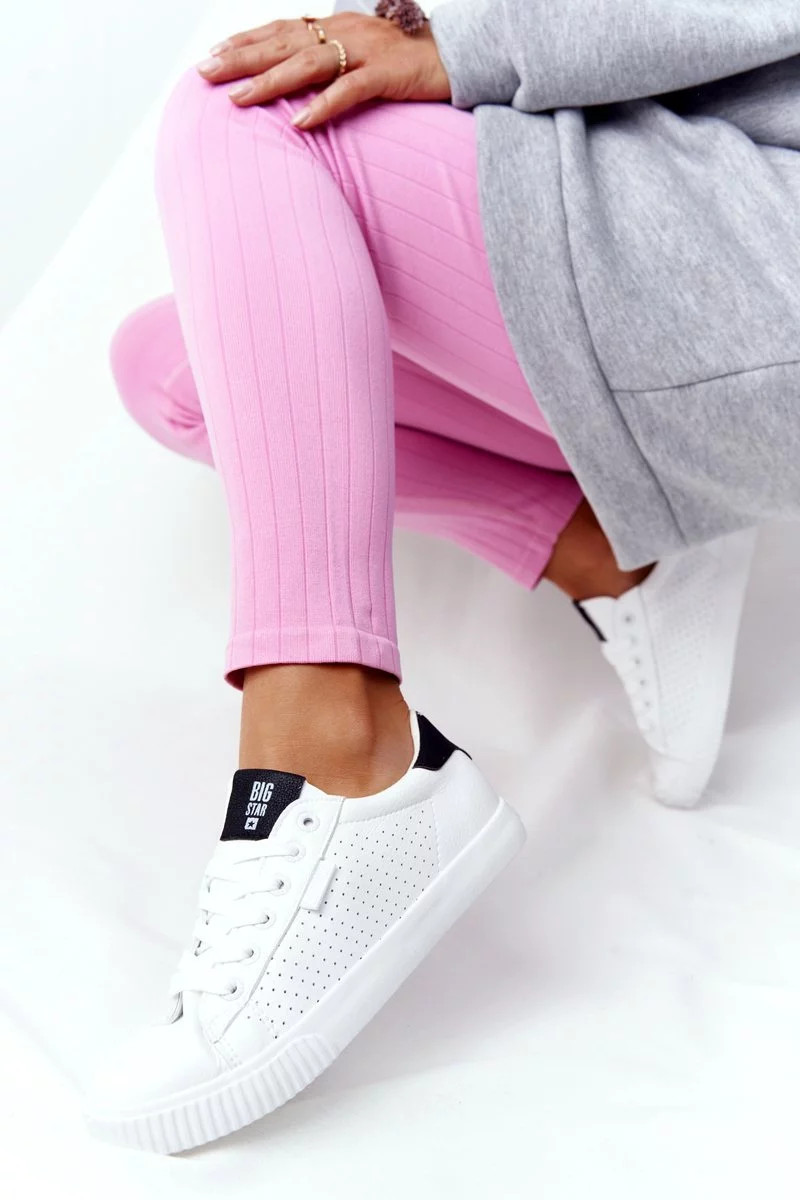 Módní a univerzální tenisky Big Star jsou ideální volbou pro ženy, které hledají pohodlnou obuv s moderním designem. Svršek je vyroben z kvalitních materiálů, které zajišťují prodyšnost i odolnost. Pohodlná vnitřní stélka se přizpůsobí tvaru chodidla a gumová podrážka poskytuje výbornou přilnavost. Kontrast bílé a černé působí elegantně i sportovně, díky čemuž se tenisky snadno kombinují s různými outfity. Hlavní benefity: Nadčasová bílo-černá kombinace Prodyšný a odolný materiál Pohodlná stélka pro celodenní komfort Stylový městský vzhled Protiskluzová gumová podrážka Tip: Skvěle se hodí k džínům, šatům i sportovním outfitům. Ideální na běžné nošení, do práce nebo na víkendové výlety po městě. Využití: Každodenní nošení, volný čas, cestování, městský styl. Technické parametry: Svršek: textil / syntetika Vnitřek: textil Stélka: měkká, tvarovaná Podešev: guma