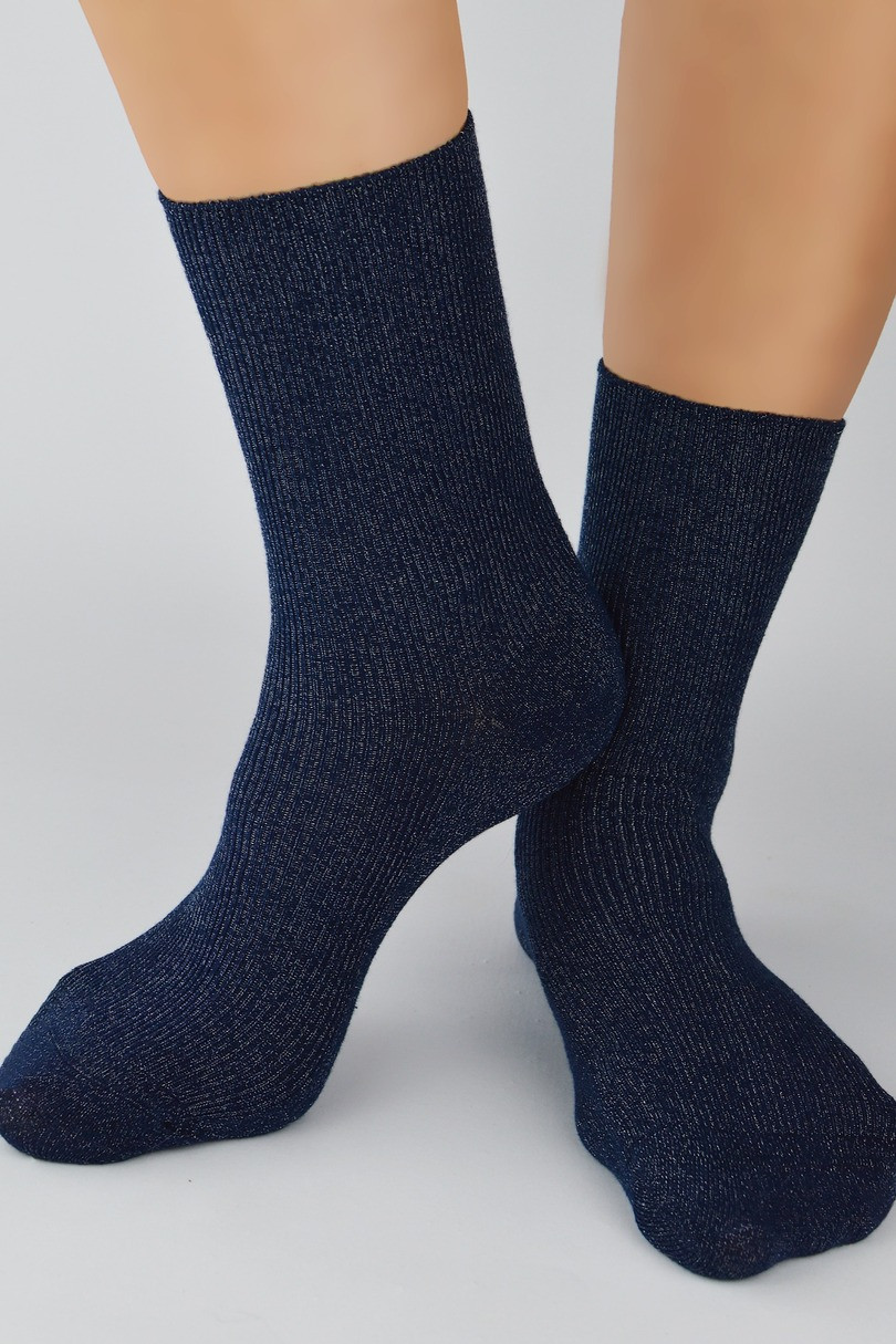 Dámské netlačící ponožky - Žebrování, lurex SB075 tmavě modrá 36-41