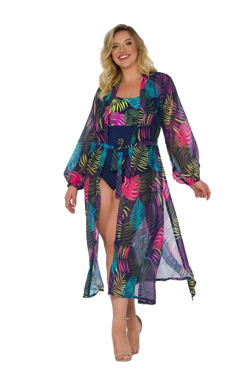 Dámské pareo tunikového typu - vzdušné, elegantní - dlouhé, vzorované - vázané v pase - dlouhé rukávy Složení: 100% polyester