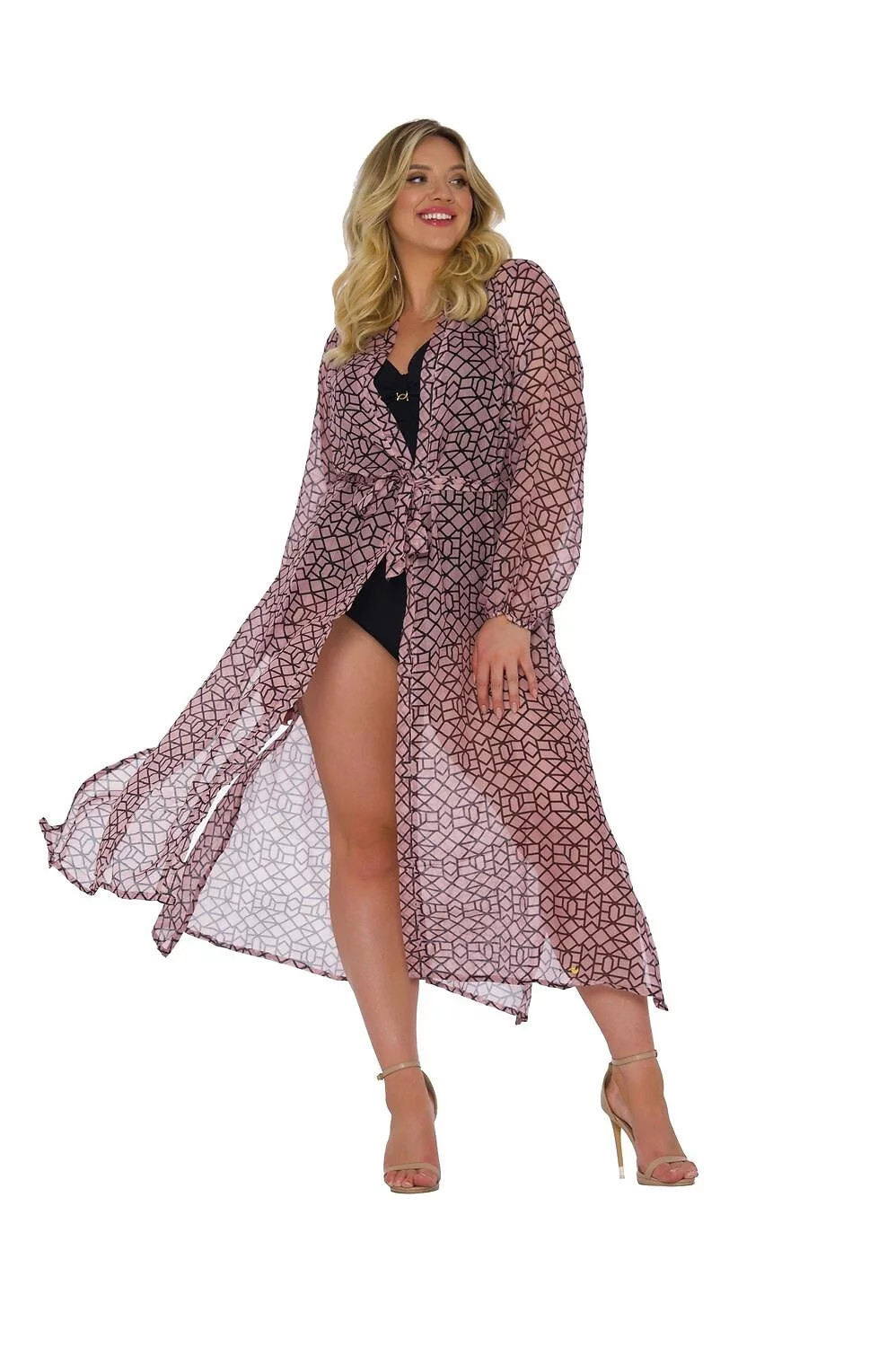 Dámské pareo tunikového typu - vzdušné, elegantní - dlouhé, vzorované - vázané v pase - dlouhé rukávy Složení: 100% polyester