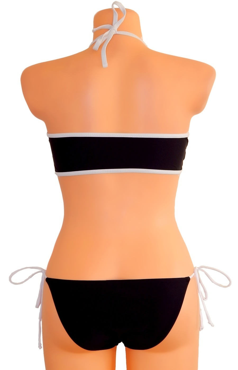 Dámské plavky dvoudílné sexy bikiny SULTRY polstrované košíčky zdobené bílými lemy černé - Černá - OEM S