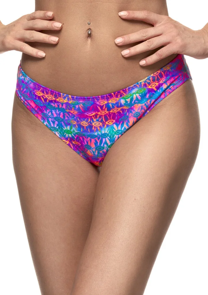 Dámske plavky FANTASY kolekce Amy. Kalhotky klasického střihu mají nižší pas a vpředu jsou lehce vykrojeny. Plavky jsou pestrobarevné, hladké. V pase a nohavičkách je našitá pružná gumička. Celý díl je podšitý rychleschnocí látkou. Ke kalhotkám lze kombinovat jakýkoliv horní díl ze stejné kolekce. Materiálové složení: 80% polyamid, 20% elastan.