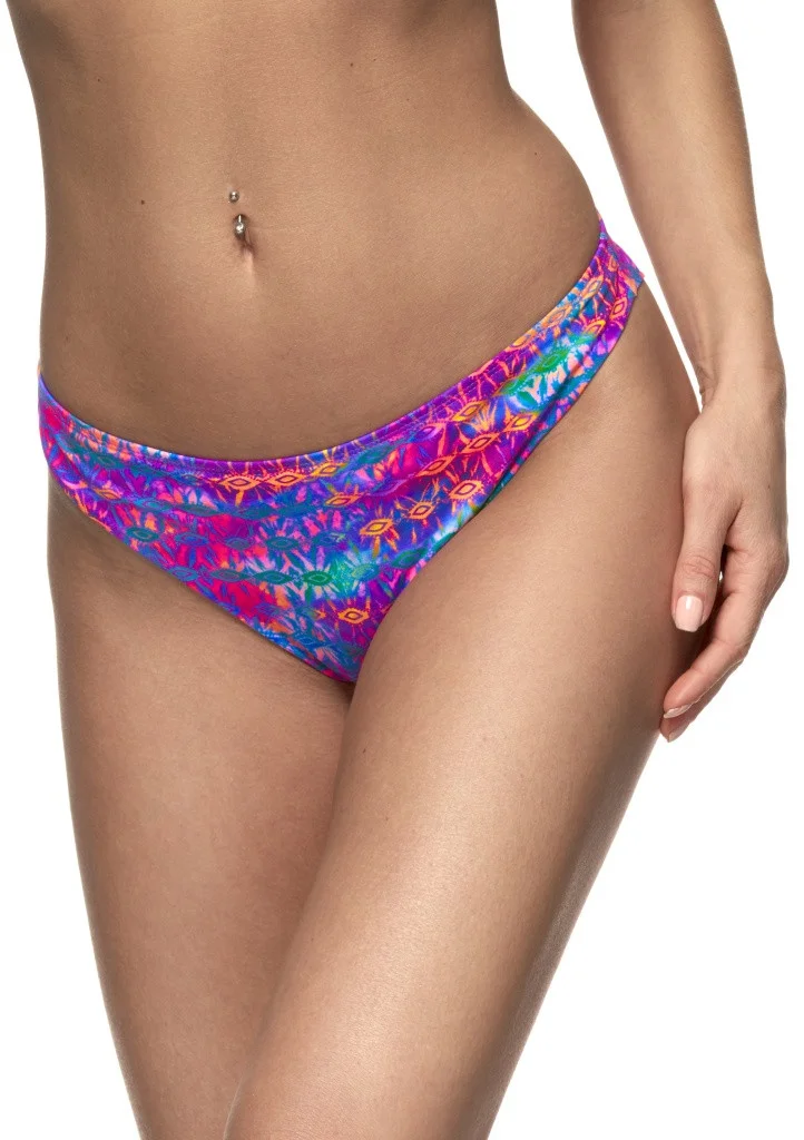 Dámské plavky Fantasy z nové kolekce Amy. Nižší brazilky jsou v přední části podšité, vzadu uprostřed jsou kalhotky lehce nařasené. U těchto plavek lze libovolně kombinovat spodní a horní díl v řádu zadaných velikostí jednotlivých dílů. Plavky jsou české výroby a koupí tohoto výrobku podpoříte produkci českého oděvního průmyslu. Materiálové složení: 80% polyamid, 20% elastan.