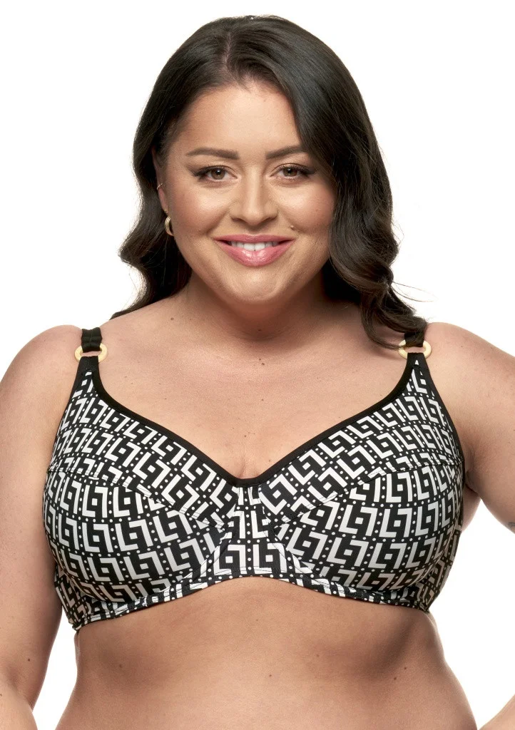 Dámské plavky Fantasy z nové kolekce Giani. Dámský horní plavkový díl s atraktivním vzorem má nevyztužené podšité košíčky s kosticemi. Střih košíčků je členitý a středně široký podšitý obvod podprsenky se širšími zády pro lepší oporu poprsí Vám zaručí pevné a pohodlné nošení tohoto modelu. Ramínka nejsou odepínací, jsou pevná a v přední části mají ozdobné plastové kroužky. Zadní zapínání je širší. U těchto plavek lze libovolně kombinovat spodní a horní díl v řádu zadaných velikostí jednotlivých dílů. Plavky jsou české výroby a koupí tohoto výrobku podpoříte produkci českého oděvního průmyslu. Materiálové složení: 80% polyamid, 20% elastan.
