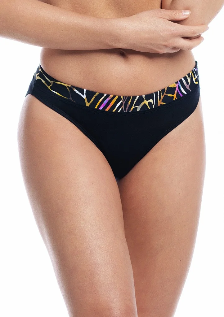 Dámské plavky Fantasy z nové kolekce Ora. Dámský nižší spodní plavkový díl v černé barvě s ozdobným lemem. U těchto plavek lze libovolně kombinovat spodní a horní díl v řádu zadaných velikostí jednotlivých dílů. Plavky jsou české výroby a koupí tohoto výrobku podpoříte produkci českého oděvního průmyslu. Materiálové složení: 80% polyamid, 20% elastan. Níže uvedená videa vás můžou provést technickou specifikací střihů plavek této kolekce, nebo inspirací designů jednotlivých kolekcí. Mrkněte, co jsme pro vás pro snazší orientaci v naší kolekci plavek připravili