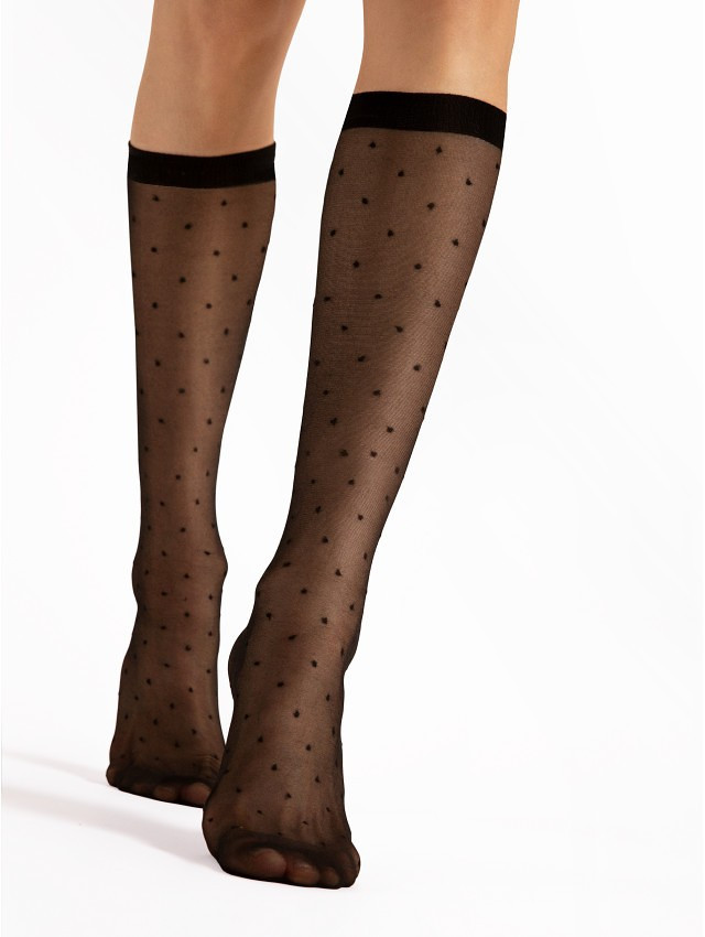 Dámské vzorované podkolenky - zdobené tečkovaným vzorem - bez výztuže na prstech - netlačící pásek Složení: 90% polyamid, 10% elastan