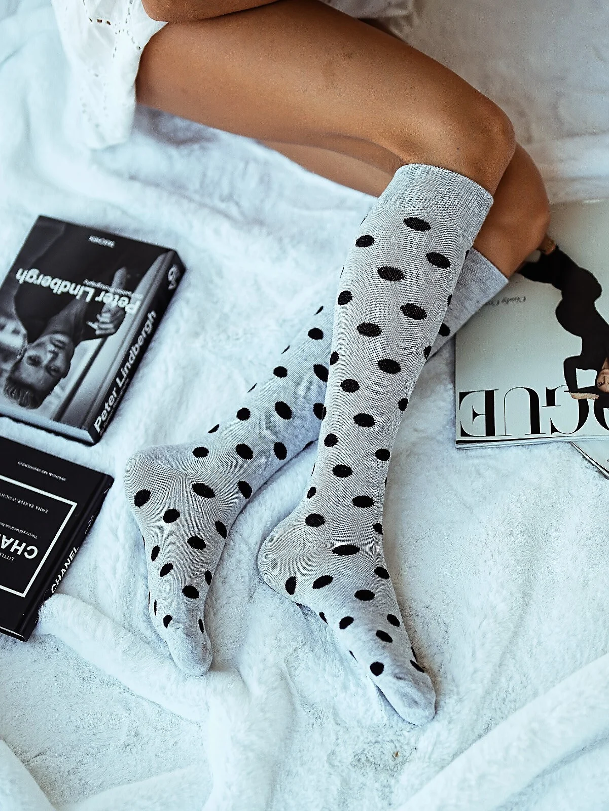 Dámské podkolenky - z vysoce kvalitní bavlny - zdobené hráškovým vzorem Složení: 75 % bavlna, 20 % polyamid, 5 % elastan