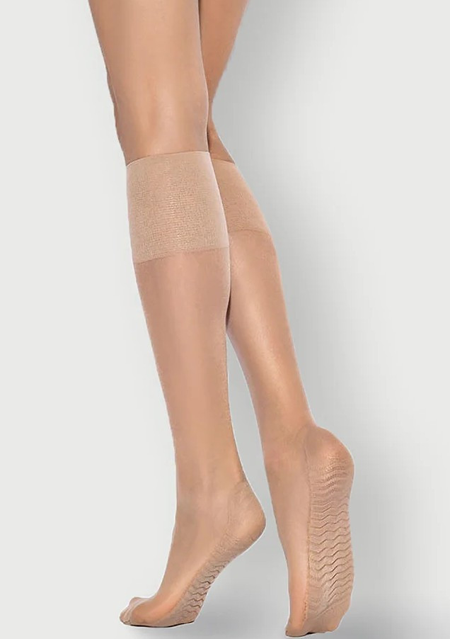 Dámské podkolenky s profilaktickým masážním efektem ve spodní části chodidla. Podkolenky upravují a zlepšují prokrvení. Vrchní okraj modelu lemuje široký stahovací lem, který netlačí a který je při nošení pohodlný a komfortní. Složení: 87 % polyamid, 13 % elastan.