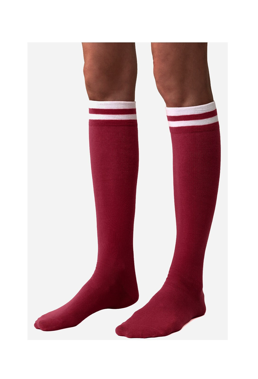 Bavlněné dámské nebo dívčí podkolenky. Podkolenky jsou jednobarevné a jsou ozdobené kontrastními proužky. Model má lem, který při nošení netlačí. Složení: 70 % bavlna, 27 % polyamid, 3 % elastan.