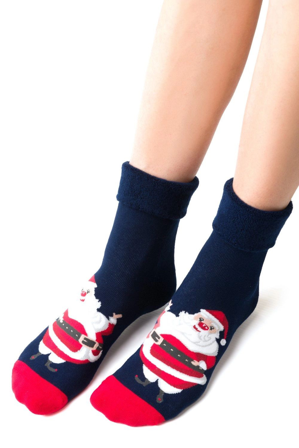 Dámské ponožky 030 042 Steven - tmavě modrá barva - z vysoce kvalitní froté bavlny - vánoční motiv - měkké a hřejivé - přehnutý horní lemMateriálové složení: 81% bavlna + 8% polyamid + 9% polypropylen + 2% elastan
