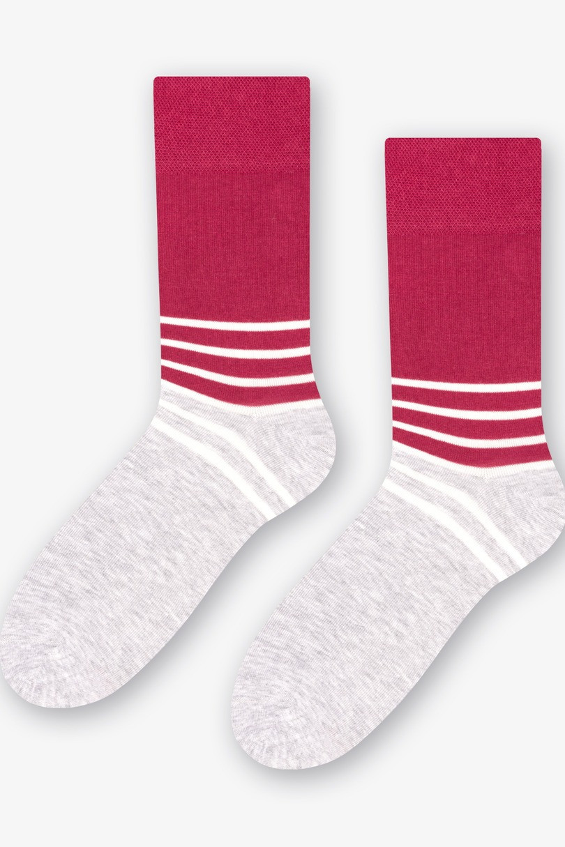 Dámské vzorované ponožky s vysokým podílem bavlny a přídavkem elastických vláken. Mají nestahující lem. Složení se liší podle vzoru: 61-63% bavlna, 23% polyamid, 10-12% polypropylen, 4% elastan.