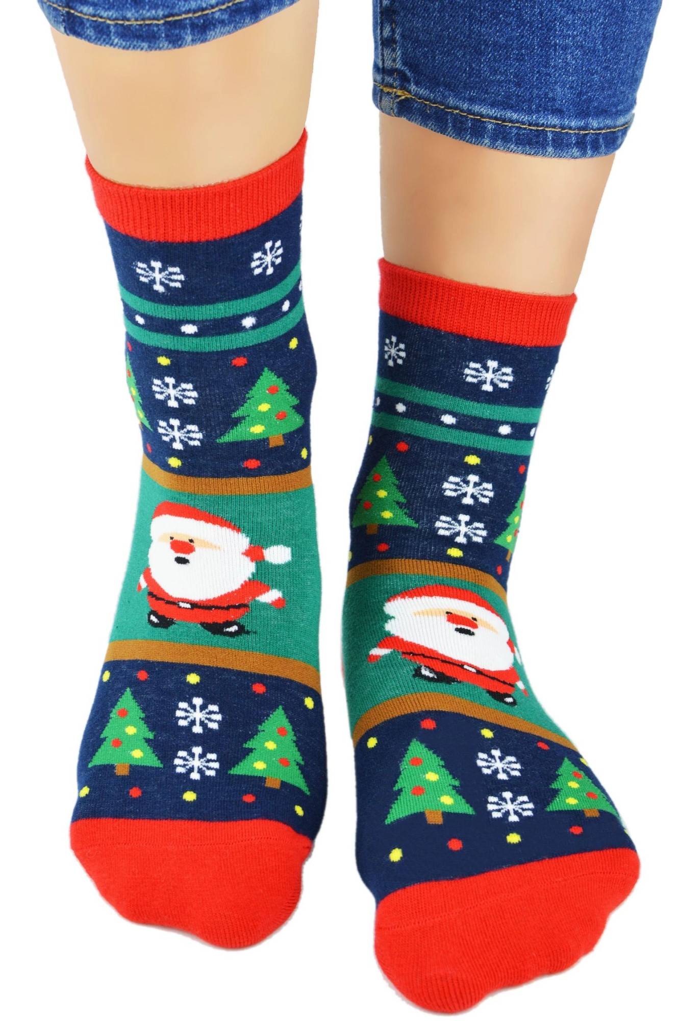 Dámské ponožky 100 W 04 NOVITI - tmavě modrá barva - z měkké bavlny - profilovaná pata - velmi pohodlné - vánoční motivMateriálové složení: 75% bavlna + 22% polyester + 3% elastan