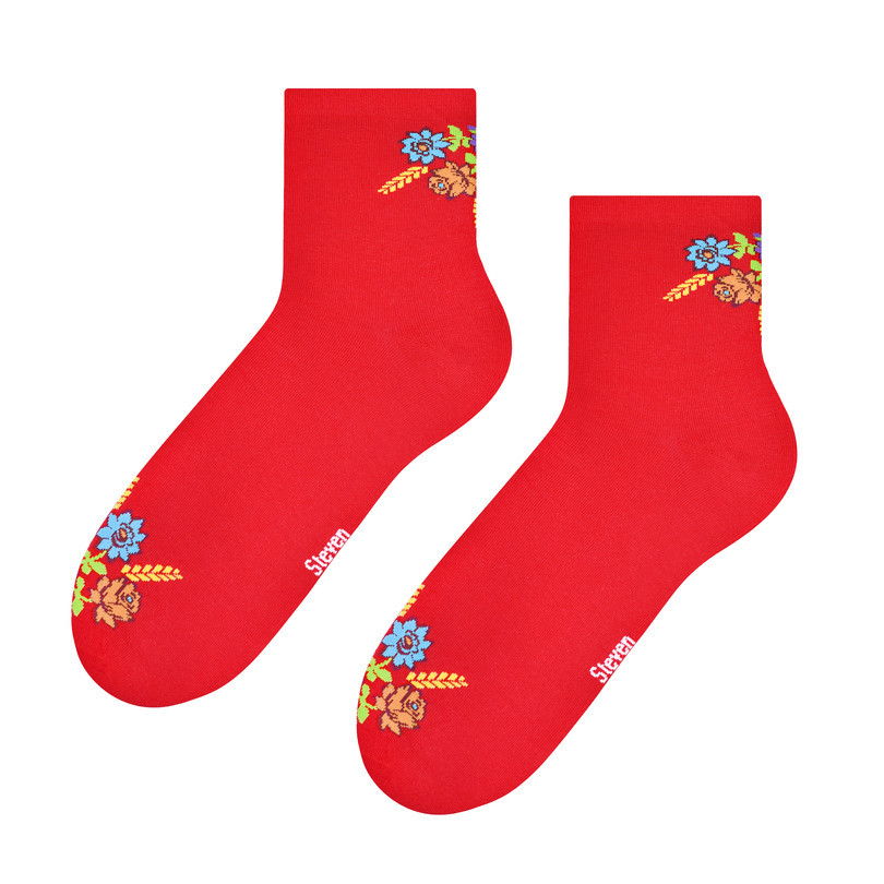 Dámské ponožky s folklórním vzorem. Ponožky jsou vyrobené z velmi kvalitní tenké bavlny. Složení: 78 % bavlna, 14 % polyamid, 6 % polypropylen, 2 % elastan.