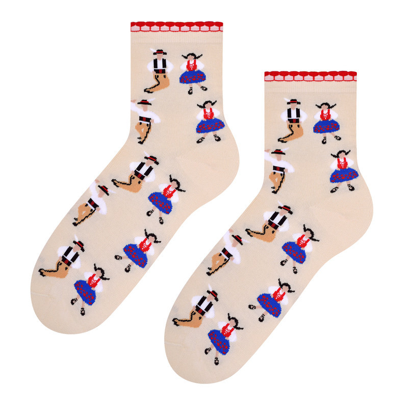 Dámské ponožky s folklórním vzorem. Ponožky jsou vyrobené z velmi kvalitní tenké bavlny. Složení: 78 % bavlna, 14 % polyamid, 6 % polypropylen, 2 % elastan.