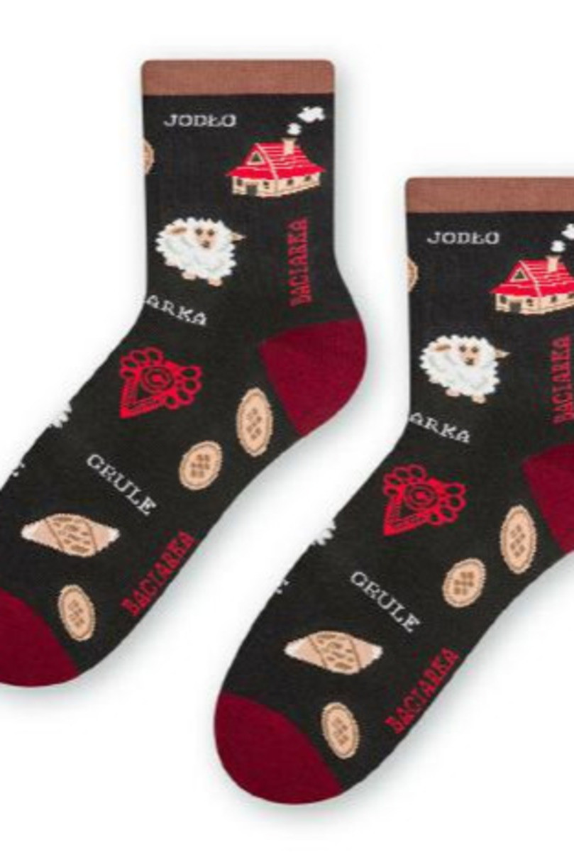 Dámské ponožky s folklórním vzorem. Ponožky jsou vyrobené z velmi kvalitní tenké bavlny. Složení: 78 % bavlna, 14 % polyamid, 6 % polypropylen, 2 % elastan.