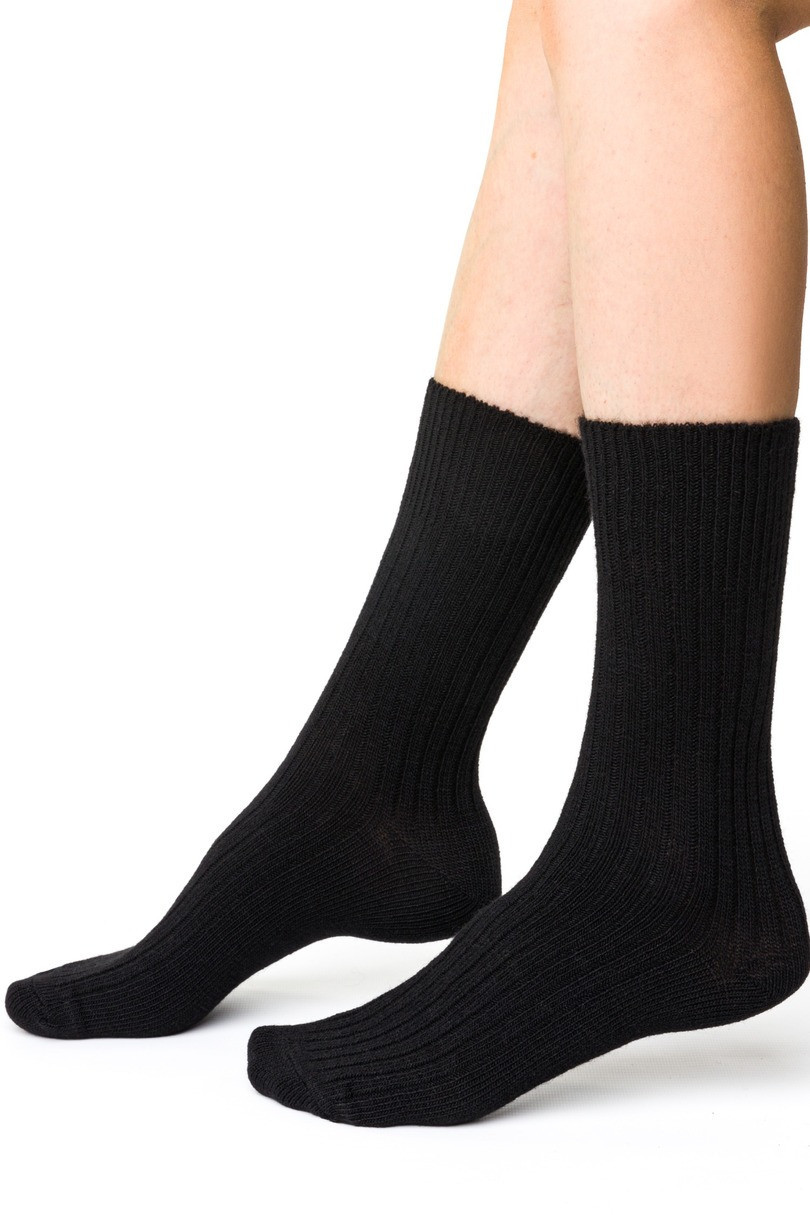 Dámské ponožky s vlnou alpaka. Vlna alpaka je třikrát pevnější než ovčí vlna, nepohlcuje zápach a má antialergické a termoizolační vlastnosti. Díky tomu jsou ponožky hedvábně měkké, nadýchané a velmi jemné. Žebrovaná struktura eliminuje zbytečný tlak na chodidlo. Ekologické papírové štítky je možné recyklovat. Složení: 56 % akryl, 22 % vlna, 11 % polyamid, 9 % alpaka, 2 % elastan.