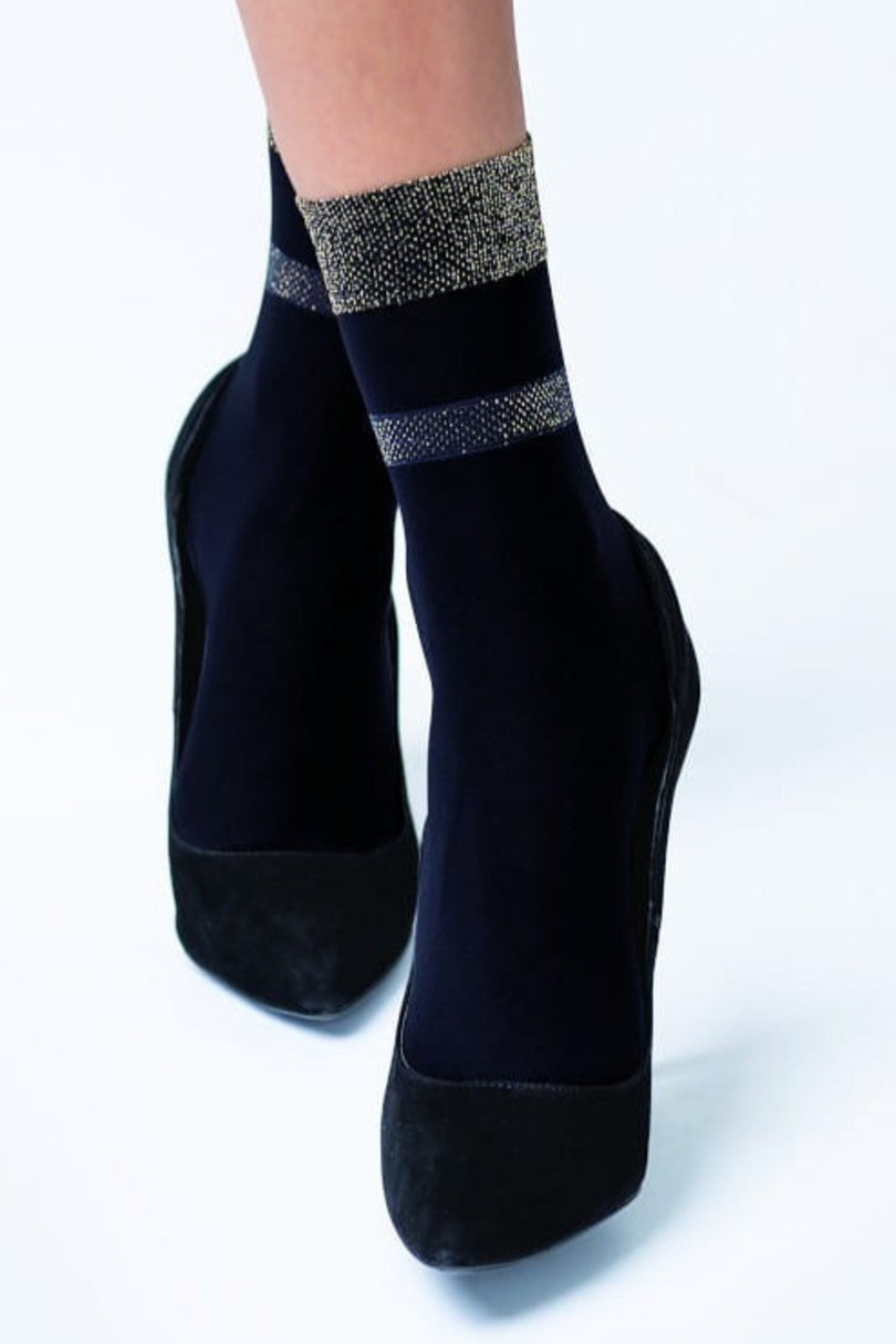 Dámské ponožky s jemností 40 DEN. Ponožky jsou ozdobené lesklou lurexovou přízí.