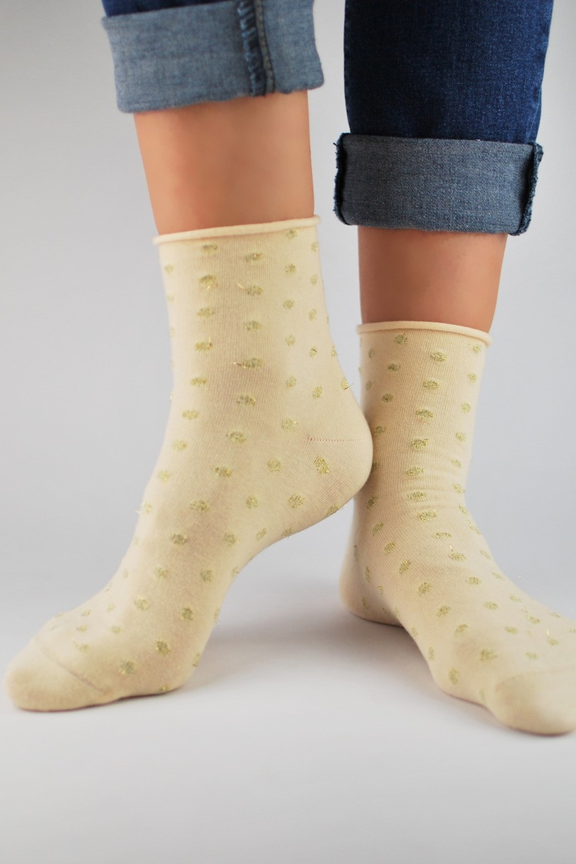 PONOŽKY BEZ PÁSU S LUREXOVÝMI TEČKAMI SB024 Béžová 35-38
