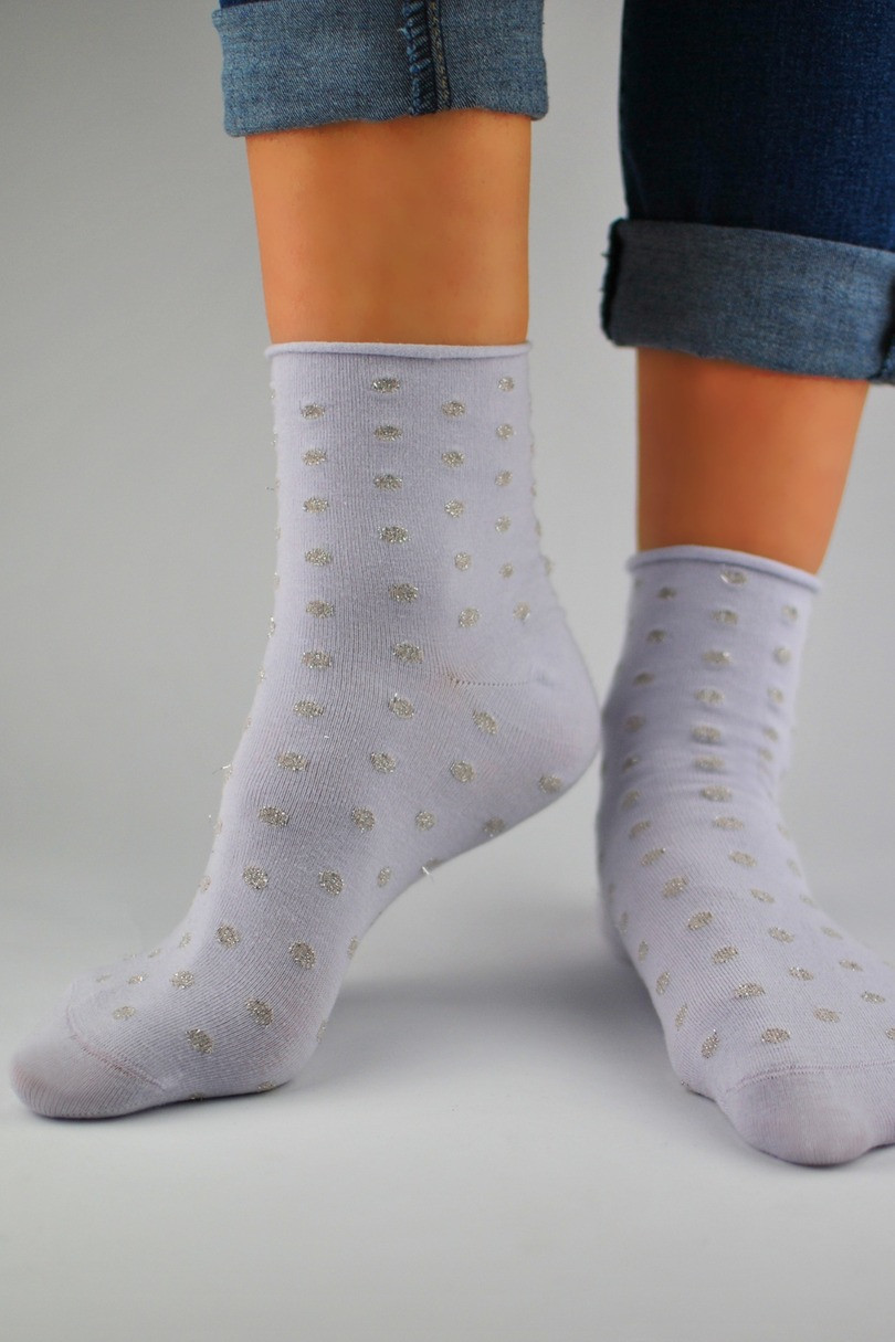 PONOŽKY BEZ PÁSU S LUREXOVÝMI TEČKAMI SB024 fialová 39-42
