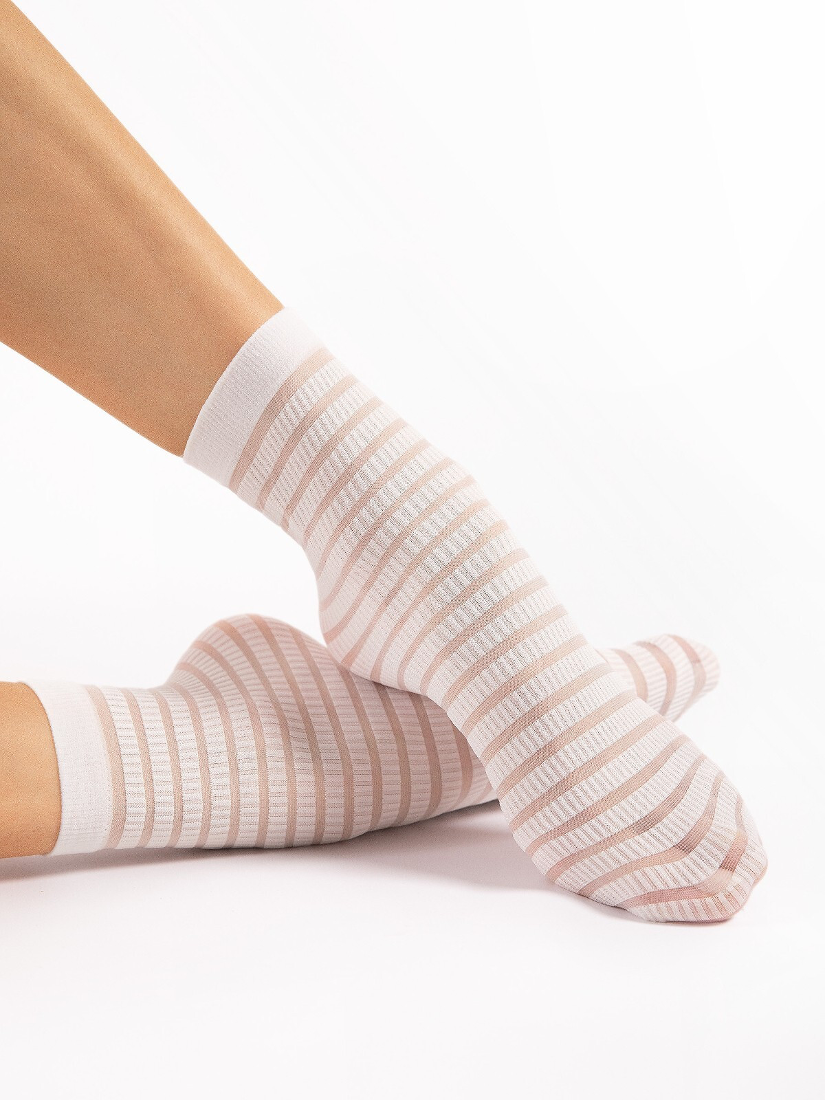 Tenké ponožky 20 den - zdobené pruhovaným vzorem - pohodlné žebrování Složení: 94 % polyamid, 6 % elastan