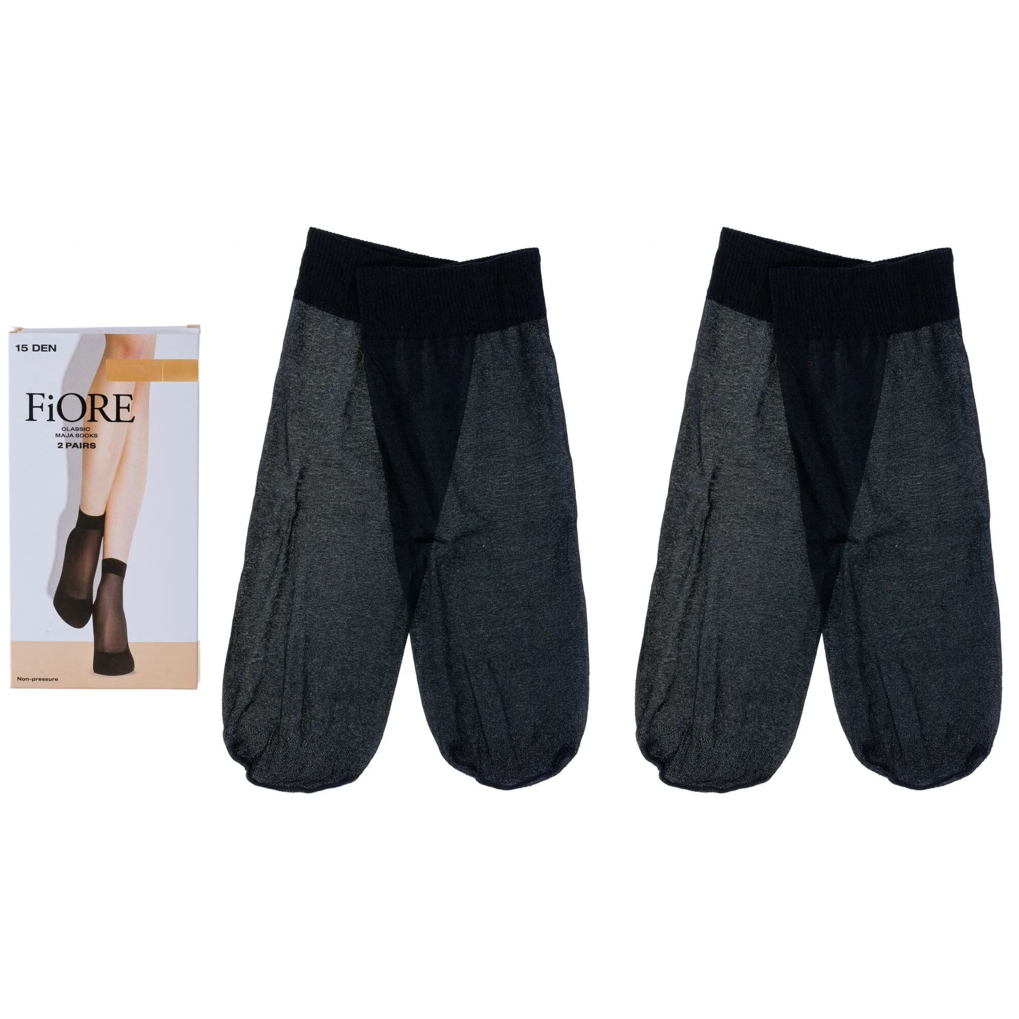 Jedinečný kousek pro jedinečné ženy! Originální elegantní ponožky značky Fiore. Tenké dámské ponožky s nestahovacím lemem a bez vyznačených prstů. Balené v krabičce po dvou kusech. Ušité z lycry. Materiálové složení: 86% polyamid, 14% elastan