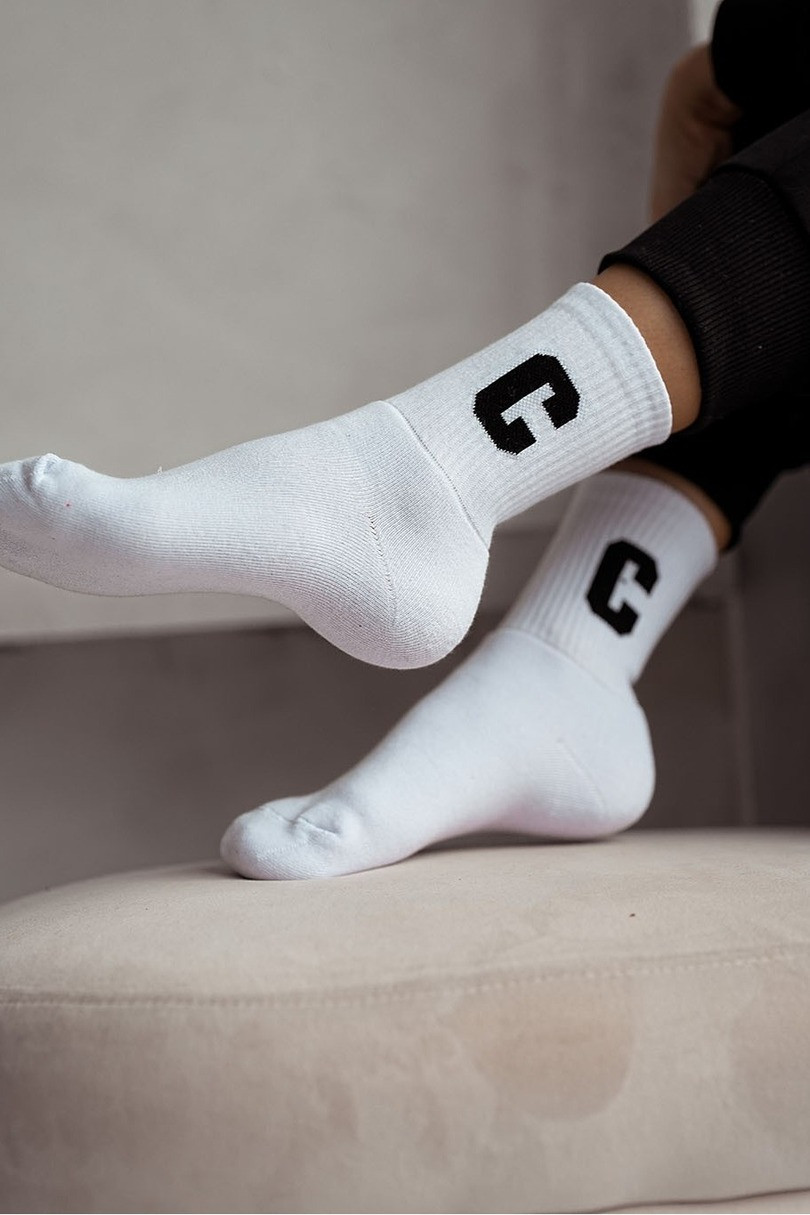 Dámské sportovní ponožky s froté stélkou, zdobené v horní části písmenem C.
