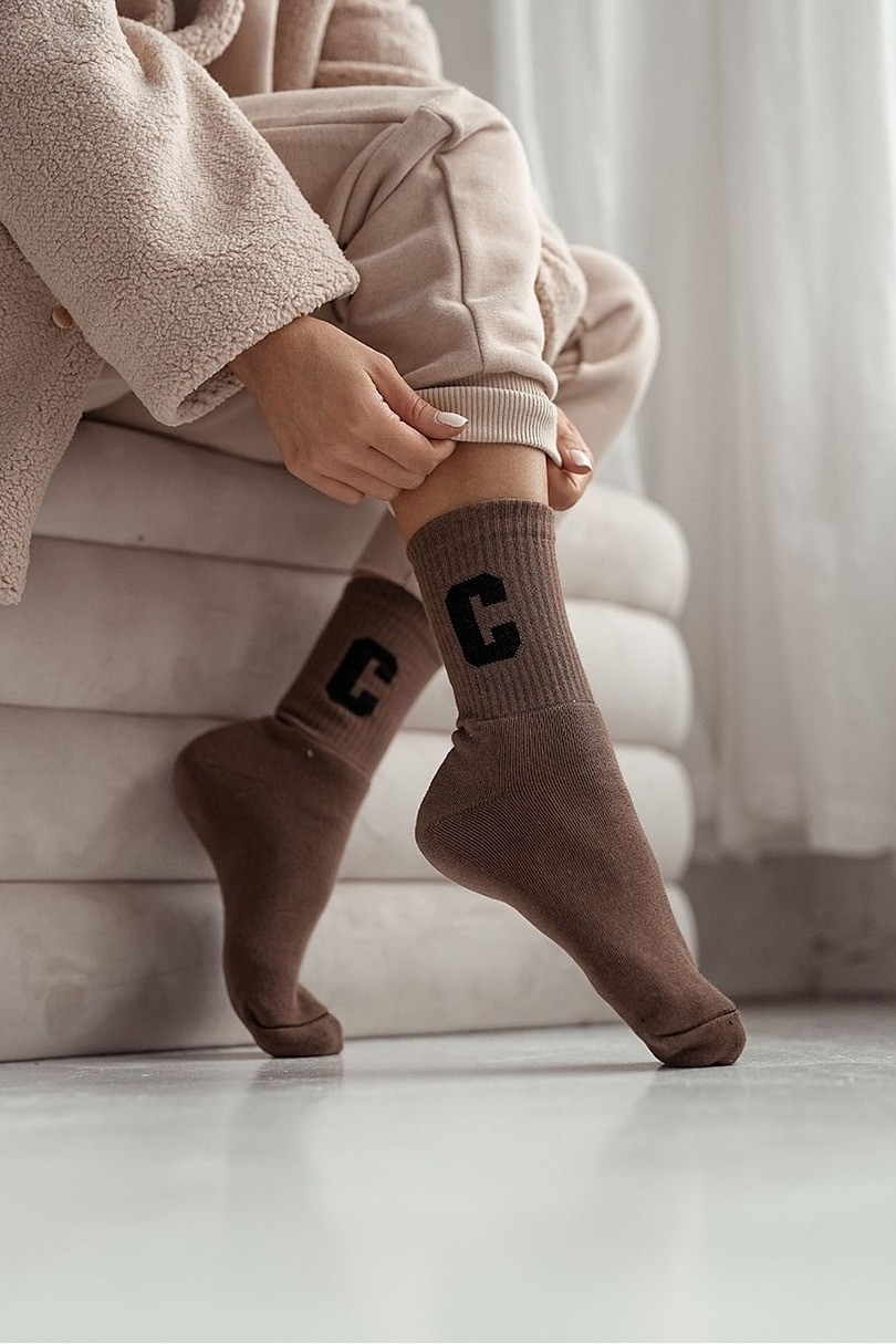DÁMSKÉ FROTÉ PONOŽKY PÍSMENO C 0118.009 hnědá 37-41