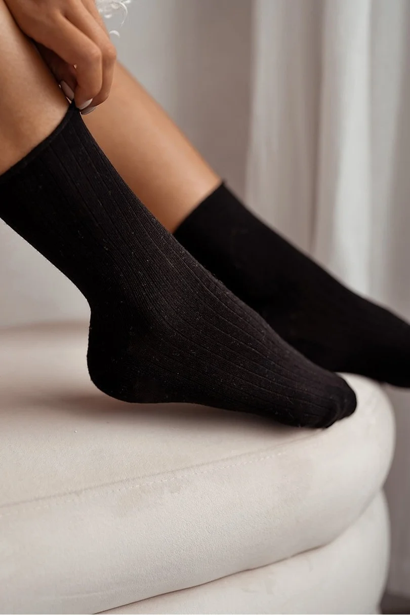 Bavlněné ponožky hladké, žebrované s froté v chodidle pro lidi, kteří ocení pohodlí. Jsou ideální pro každodenní styling. .