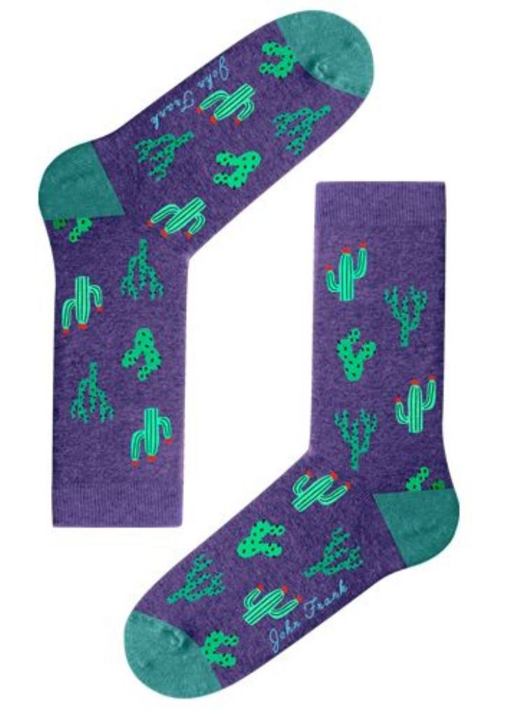 Dámské vyšší ponožky JOHN FRANK s originálním motivem. Ponožky jsou pohodlné, netáhnoucí a dobře se formující kolem nohy. Ponožky jsou prodyšné a v horní části ukončené netáhnoucím lemem. Velikost ponožek je univerzální. Materiálové složení 80% bavlna, 17% polyamid a 3% elastan.